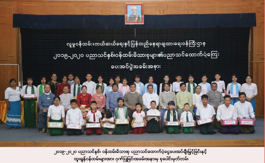 ထို့နောက် ဗဟိုဝန်ထမ်းတက္ကသိုလ်တွင်ထူးချွန်ဆုရသူ(၃)ဦး၊ ၂၀၁၈-၂၀၁၉ ပညာသင်နှစ် တက္ကသိုလ်ဝင်စာမေးပွဲတွင် ထူးချွန်စွာအောင်မြင်ခဲ့သည့် လေးဘာသာဂုဏ်ထူးရှင်(၁)ဦး၊ သုံးဘာသာဂုဏ်ထူးရှင်(၁)ဦး၊ နှစ်ဘာသာဂုဏ်ထူးရှင် (၂)ဦး၊ တစ်ဘာသာဂုဏ်ထူးရှင်(၂)ဦး တို့အား ပြည်ထောင်စုဝန်ကြီးကလည်းကောင်း၊ တက္ကသိုလ်အဆင့်၊ အထက်တန်းအဆင့်၊ အလယ်တန်းအဆင့်နှင့်မူလတန်းအဆင့်တက်ရောက်ကြမည့် ဝန်ကြီးဌာနမှ ဝန်ထမ်းမိသားစုများ ၏ သားသမီးများအတွက် ပညာသင်ထောက်ပံ့ငွေများကို ဒုတိယဝန်ကြီး၊ ညွှန်ကြားရေးမှူးချုပ်များ နှင့် ဒုတိယညွှန်ကြားရေးမှူးချုပ်တို့ကလည်းကောင်း၊ ဝန်ထမ်းပေါင်းစုံ သမဝါယမအသင်း လီမိတက်မှ အသင်းသားများ၏ သား/သမီးများအတွက် ပညာသင်ထောက်ပံ့ငွေ ကို ဒုတိယအမြဲတမ်းအတွင်းဝန်က လည်းကောင်း အသီးသီး ပေးအပ်ချီးမြှင့်ခဲ့ပါသည်။