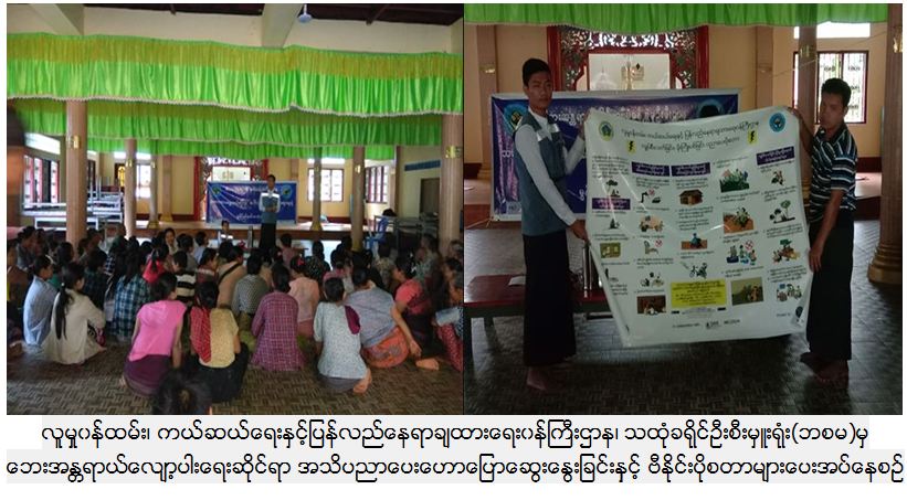 လူမှုဝန်ထမ်း၊ ကယ်ဆယ်ရေးနှင့်ပြန်လည်နေရာချထားရေးဝန်ကြီးဌာန၊ ဘေးအန္တရာယ်ဆိုင်ရာစီမံခန့်ခွဲ မှုဦးစီးဌာန၊ သထုံခရိုင်ဦးစီးမှူးရုံးမှ တာဝန်ရှိသူများသည် (၂၆.၆.၂၀၁၉) ရက်နေ့ (၁၀:၀၀)နာရီမှ (၁၂း၀၀)နာရီထိ မွန်ပြည်နယ် သထုံမြို့နယ်၊ စခန်းကြီးကျေးရွာ ၊ ဘုန်းကြီးကျောင်းတွင် ဘေးအန္တရာယ် လျော့ပါးရေးဆိုင်ရာ အသိပညာပေးဟောပြောဆွေးနွေးခြင်း ၊ နံရံကပ်ပိုစတာများကပ်ခြင်းနှင့်တို့အား ကျင်းပပြုလုပ်ခဲ့ရာ ပြည်သူလူထုအင်အား စုစုပေါင်း(၁၀၀)ဦး ခန့်တက်ရောက်ခဲ့ပြီး၊ အဆိုပါကျေးရွာ အတွင်း (DAN) Mobile Application ဖြန့်ဝေခြင်းနှင့် စတစ်ကာကပ်ခြင်းတို့အား ဆောင်ရွက်ခဲ့ပါ ကြောင်း သတင်းရရှိပါသည်…