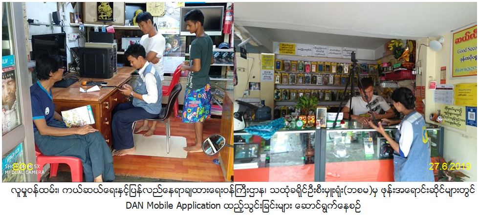 လူမှုဝန်ထမ်း၊ ကယ်ဆယ်ရေးနှင့်ပြန်လည်နေရာချထားရေးဝန်ကြီးဌာန၊ ဘေးအန္တရာယ်ဆိုင်ရာစီမံခန့်ခွဲမှုဦးစီးဌာန၊ သထုံခရိုင်ဦးစီးမှူးရုံးမှ တာဝန်ရှိသူများသည် (၂၇.၆.၂၀၁၉)ရက်နေ့တွင် မွန်ပြည်နယ်၊ သထုံမြို့၊ မြို့မဈေးနှင့် ဘင်လှိုင်ရပ်ကွက်တို့တွင် DAN Mobile Application နှင့်စပ်လျဉ်း၍ အသိပညာများဖြန့်ဝေခြင်း၊ ကြော်ငြာစတေကာများကပ်ခြင်း၊ Application ထည့်သွင်းပေးခြင်းတို့ကို ဆောင်ရွက်ခဲ့ကြောင်း သတင်းရရှိပါသည်။