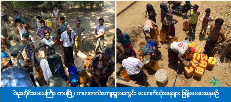 ပဲခူးတိုင်းဒေသကြီးဦးစီးမှူးရုံး (ကဆရ) မှ တာဝန်ရှိသူများသည် (၆-၅-၂၀၁၆) ရက်နေ့တွင် ကဝမြို့၊ ကမာကလဲကျေးရွာရှိ အိမ်ခြေ (၁၆၅) အိမ်ထောင်စု (၁၆၇) စုမှ လူဦးရေ (၆၇၂) ဦးအတွက် သောက်သုံးရေဂါလံ (၁၅၀၀) အား သွားရောက်ဖြန့်ဝေပေးခဲ့ကြောင်း သိရှိရပါသည်။