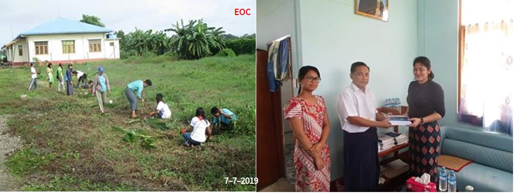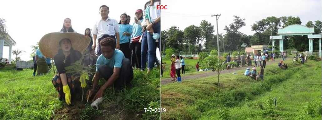 (၇-၇-၂၀၁၉)နေ့တွင် လူမှုဝန်ထမ်း၊ ကယ်ဆယ်ရေးနှင့် ပြန်လည်နေရာချထားရေးဝန်ကြီးဌာန၊ ဘေးအန္တရာယ်ဆိုင်ရာ စီမံခန့်ခွဲမှုဦးစီးဌာန၊ သဘာဝဘေးအန္တရာယ်စီမံခန့်ခွဲမှုသင်တန်း ကျောင်း ဝန်ထမ်းမိသားစုများသည် ဟင်္သာတမြို့Green Makersသစ်ပင်စိုက်ပျိုးသူများ ပရဟိတကွန်ယကအဖွဲ့ဝင်များ၊ ဟင်္သာတ တက္ကသိုလ် ကျောင်းသားကင်းထောက်အဖွဲ့ဝင်များ၊ ရုပ်ရှင်သရုပ်ဆောင်စိုးမြတ်သူဇာဦးဆောင်သည့် အဖွဲ့ဝင်များ စုစုပေါင်းအင်အား (၈၀)ဦးခန့်က ကျောင်းဝင်းအတွင်း တပြေဘူတ၊ ရေတမာ၊ မဟော်ဂနီ၊ မဲဇလီ၊ စိန်ပန်း၊ ပိတောက်စသည့် အပင်များကို သဘာဝပတ်ဝန်းကျင်ထိန်းသိမ်းရေး၊ အရိပ် အာဝါသရရှိရေး လှုပ်ရှားဆောင်ရွက်ခြင်းအနေဖြင့်စိုက်ပျိုးခဲ့ကြပါသည်။သစ်ပင်များ စိုက်ခြင်း မပြုမီ မြေနေရာကြည့်ရှု့ခြင်း၊ မြေအမျိုးအစားနှင့်စိုက်ပျိုးမည့် သစ်ပင်များရွေးချယ်ရေး၊ မြေယာရှုခင်း landscape အကွက် တကျဖြစ်စေရေးတို့အတွက်ကိုလည်း၊Green Makerအဖွဲ့၊ DMTC ကျောင်းနှင့် စိုက်ပျိုးရေး ကျွမ်းကျင်သူများက အကြိမ်ကြိမ်တွေ့ဆုံခြင်းတို့ကြိုတင်ဆောင်ရွက်ခဲ့ကြပါသည်။