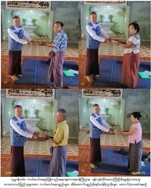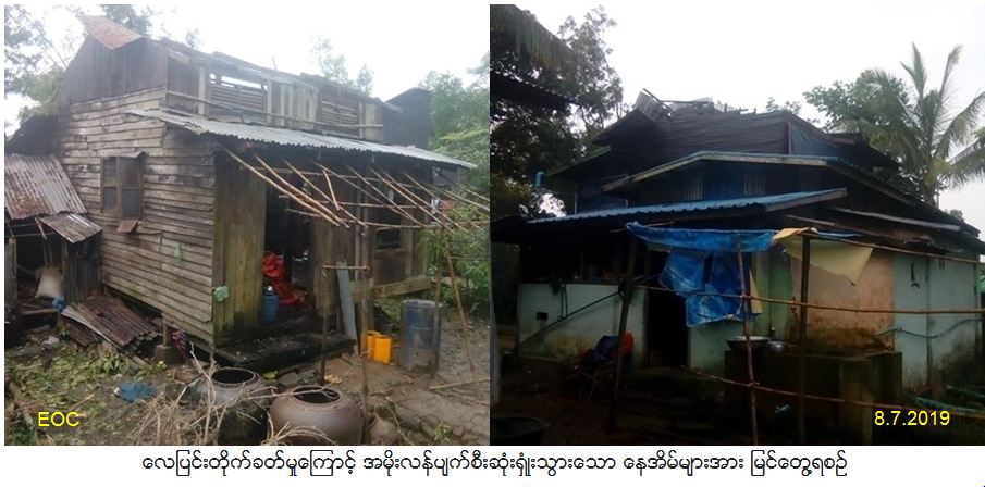 လူမှုဝန်ထမ်း၊ ကယ်ဆယ်ရေးနှင့်ပြန်လည်နေရာချထားရေးဝန်ကြီးဌာန၊ ဘေးအန္တရာယ်ဆိုင်ရာစီမံခန့်ခွဲမှုဦးစီးဌာန၊ ရန်ကုန်တိုင်းဒေသကြီးဦးစီးမှူးရုံးမှ ရန်ကုန်တောင်ပိုင်းခရိုင်၊ ဒလမြို့နယ်၊ သရောတန်းကျေးရွာအုပ်စုတွင် (၇-၇-၂၀၁၉)ရက်နေ့၊ (၁၉:၃၀)နာရီအချိန်၌ လေပြင်းတိုက်ခတ်မှုကြောင့် အိမ်ခြေ(၅)လုံးအမိုးလန်ပျက်စီးခဲ့ပြီး အိမ်ခြေ(၁)လုံး သစ်ပင်ပိပြိုကျပျက်စီးခဲ့ရာ ပြိုကျနေအိမ်(၁)လုံးအတွက် ကယ်ဆယ်ရေးပစ္စည်း(၁၁)မျိုး(၁)အိမ်ထောင်စုစာနှင့် အိမ်ဆောက်ပစ္စည်းဖိုး ငွေကျပ်(၉၀၀၀ဝိ/-)၊ အမိုးလန်နေအိမ်(၅)လုံးအတွက ်အိမ်ဆောက်ပစ္စည်းဖိုးငွေကျပ်(၂၅၀၀၀ဝိ/-)နှင့် လူဦးရေစုစုပေါင်း(၂၄)ဦးအတွက် ဆန်ရိက္ခာဖိုးငွေကျပ်(၅၀၄၀ဝိ/-)၊စုစုပေါင်းထောက်ပံ့ငွေကျပ်(၃၉၀၄၀ဝိ/-)အား (၈-၇-၂၀၁၉)ရက်နေ့တွင် ဘေးသင့်ပြည်သူများထံသို့ သွားရောက်ထောက်ပံ့ခဲ့ကြောင်း သတင်းရရှိပါသည်။
