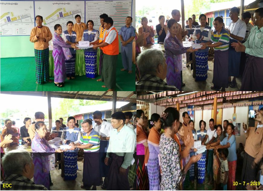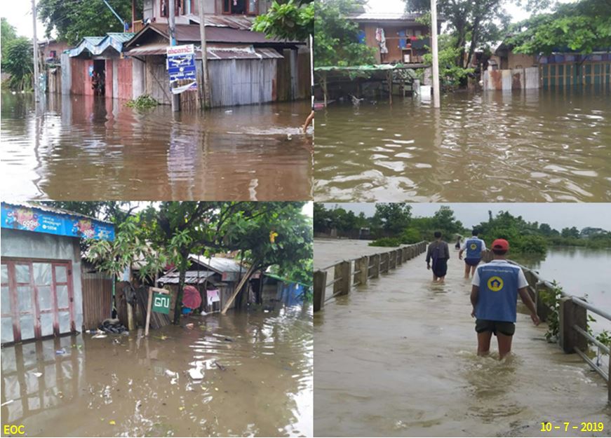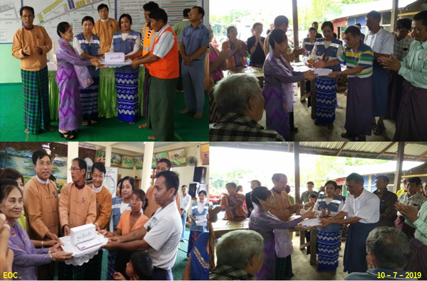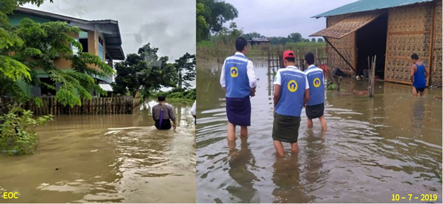 လူမှုဝန်ထမ်း၊ ကယ်ဆယ်ရေးနှင့် ပြန်လည်နေရာချထားရေးဝန်ကြီးဌာနအနေဖြင့် အမျိုးသား သဘာဝဘေးအန္တရာယ်ဆိုင်ရာစီမံခန့်ခွဲမှုကော်မတီ၏ လမ်းညွှန်မှုဖြင့် တိုင်းဒေသကြီး/ ပြည်နယ် သဘာဝဘေး အန္တရာယ်ဆိုင်ရာစီမံခန့်ခွဲမှုအဖွဲ့များ၊ ဒေသခံလူမှုရေးအဖွဲ့အစည်းများနှင့်ပူးပေါင်းကာ ရေဘေးကူညီ ကယ်ဆယ်ရေး လုပ်ငန်းများကိုဆောင်ရွက်လျက်ရှိကြောင်းနှင့် ကချင်ပြည်နယ်အစိုးရအဖွဲ့လူမှုရေးဝန်ကြီး၊ အခြားဌာနဆိုင်ရာများနှင့်အတူ ဘေးအန္တရာယ်ဆိုင်ရာစီမံခန့်ခွဲမှုဦးစီးဌာန၊ ကချင်ပြည်နယ်ဦးစီးမှူးရုံးမှ တာဝန် ရှိသူများက အဆိုပါရေဘေးသင့်ပြည်သူများအတွက် ဆန်ရိက္ခာဖိုးနှင့် စားသောက်ဖွယ်ရာများကို (၁၁-၇-၂၀၁၉) ရက်နေ့တွင် သွားရောက်ထောက်ပံ့ပေးခဲ့ပါသည်။