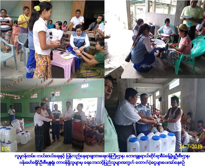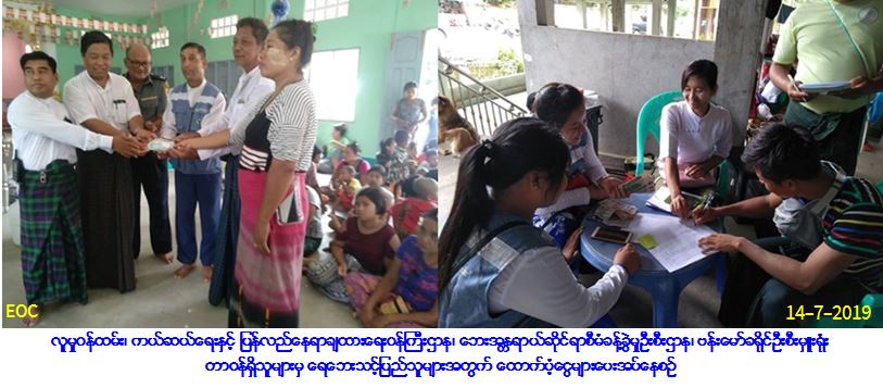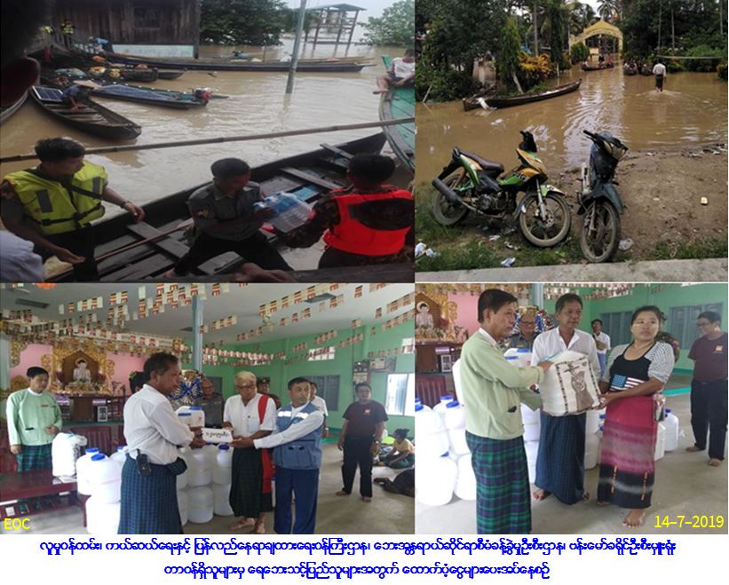 လူမှုဝန်ထမ်း၊ ကယ်ဆယ်ရေးနှင့် ပြန်လည်နေရာချထားရေးဝန်ကြီးဌာန၊ ဘေးအန္တရာယ်ဆိုင်ရာ စီမံခန့်ခွဲမှုဦးစီးဌာန၊ ဗန်းမော်ခရိုင်ဦးစီးမှူးရုံးမှ တာဝန်ရှိသူများသည် ဗန်းမော်ခရိုင်၊ ဗန်းမော်မြို့တွင်(၁၁-၇-၂၀၁၉) ရက်နေ့မှ (၁၃-၇-၂၀၁၉) ရက်နေ့အထိ ဧရာဝတီမြစ်ရေမြင့်တက်လာမှုကြောင့် ပေါက်ကုန်းရပ်ကွက်၊ ခွန်သာရပ်ကွက်၊ မင်းကျောင်းကုန်းရပ်ကွက်၊ အလယ်ရပ်ရပ်ကွက်ရှိ ရေဘေးပြောင်းရွှေ့အိမ်ထောင်စု (၁၅၀) စု၊ လူဦးရေ (၅၇၅) ဦးတို့သည် ဓမ္မိကာရုံဘုန်းကြီးကျောင်း၊ နတ်ကြီးစင်၊ သစ်စက်အနောက်၊ ရွှေကျောင်းဘုန်းကြီးကျောင်း၊ လေးထပ်ကျောင်း၊ မင်းစည်ကျောင်း၊ ပရဟိတဘုန်းကြီးကျောင်းတို့တွင်အသီးသီးယာယီပြောင်းရွှေလျက်ရှိပြီး ပြောင်းရွှေအိမ်ထောင်စု (၁၅၀) စု လူဦးရေ (၅၇၅) ဦးတ့ိုအတွက် ဆန်ရိက္ခာဖိုးငွေ (၇) ရက်စာ (၁,၂၀၇,၅၀၀/-) ကျပ်တို့အား (၁၄-၇-၂၀၁၉)ရက်နေ့ (၁၀း၀၀)အချိန်တွင် သွားရောက်ထောက်ပံ့ပေးအပ်ခဲ့ကြောင်း သတင်းရရှိပါသည်။