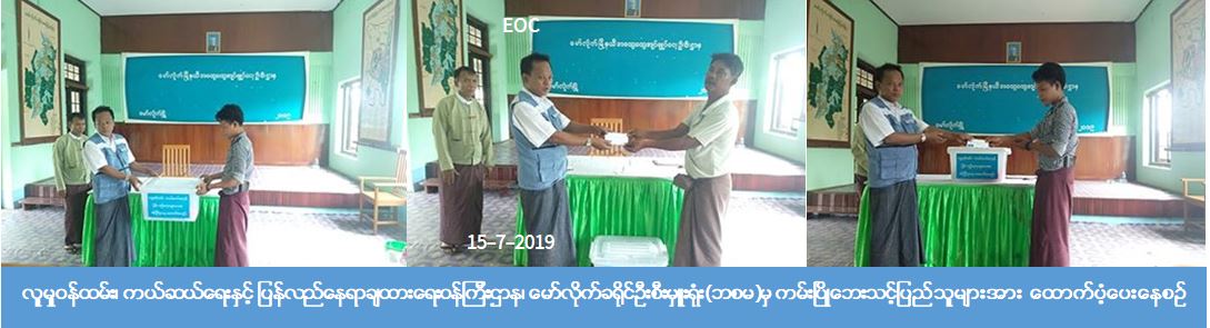 လူမှုဝန်ထမ်း၊ ကယ်ဆယ်ရေးနှင့်ပြန်လည်နေရာ ချထားရေး ဝန်ကြီးဌာန၊ ဘေးအန္တရယ်ဆိုင်ရာ စီမံခန့်ခွဲမှုဦးစီးဌာန၊ မော်လိုက်ခရိုင်ဦးစီးမှူးရုံးမှတာဝန်ရှိသူများသည် (၁၂-၇-၂၀၁၉)နေ့နှင့် (၁၅-၇-၂၀၁၉)နေ့များတွင် ချင်း တွင်းမြစ်ရေတိုက်စားမှုကြောင့် ညောင်ဝန်းကျေးရွာမှ ကြိုတင်ဖျက်သိမ်းအိမ်ထောင်စု(၄)စု၊ လူဦးရေ(၂၈)ဦး အတွက် ထောက်ပံ့ငွေစုပေါင်း (၄၅၈,၈၀၀) ကျပ်၊ ကယ်ဆယ်ရေး ပစ္စည်း(၁၀)မျိုး (၄)အိမ်ထောင်စာအား (၁၅-၇-၂၀၁၉) ရက်နေ့တွင် မြို့နယ်ထွေအုပ်အစည်းဝေးခန်းမတွင် ဘေးသင့်ပြည်သူ များအားထောက်ပံ့ပေးအပ် ခဲ့ကြောင်း သိရှိရပါသည်။