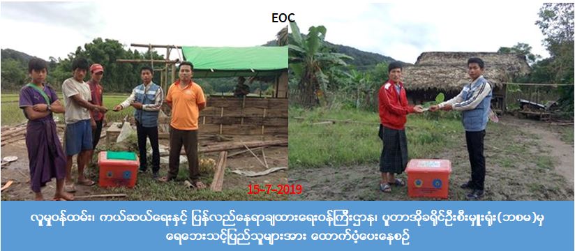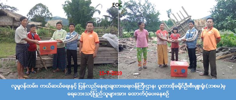 လူမှုဝန်ထမ်း၊ ကယ်ဆယ်ရေးနှင့် ပြန်လည်နေရာချထားရေးဝန်ကြီးဌာန၊ ဘေးအန္တရာယ်ဆိုင်ရာ စီမံခန့်ခွဲမှု ဦးစီး ဌာန၊ ပူတာအိုခရိုင်ဦးစီးမှူးရုံးမှတာဝန်ရှိသူ များသည် ပူတာအိုခရိုင်၊ နောင်မွန်းမြို့နယ်၌(၁၀-၇-၂၀၁၉) ရက်နေ့ တွင် ရေကြီးရေလျှံမှုကြောင့် ရပ်ဘော့ကျေးရွာအုပ်စု ရပ်ဘော့ကျေးရွာနှင့် ဘာပေါ့ကျေးရွာတို့တွင် လူနေ အိမ် (၄) လုံးတို့ပျက်စီးဆုံးရှုံးခဲ့ရပြီး အဆိုပါရေဘေးသင့်လူနေ အိမ်ထောင်စု(၄)စုမှလူဦးရေ (၂၈)ဦးတို့ အတွက် ကယ်ဆယ်ရေးပစ္စည်း(၁၀)မျိုး၊ အိမ်ဆောက်ပစ္စည်းဖိုးထောက်ပံ့ငွေကျပ် (၄၀၀,၀၀၀)ကျပ်၊ ဆန်ရိက္ခာဖိုး ထောက်ပံ့ငွေ (၅၈,၈၀၀) ကျပ်၊ စုစုပေါင်းထောက်ပံ့ငွေ (၄၅၈,၈၀၀) ကျပ်တို့ကို (၁၅-၇-၂၀၁၉) နေ့တွင် နောင်မွန်းမြို့နယ် အုပ်ချုပ်ရေးမှူး၊ World Concern Myanmar အဖွဲ့အစည်း တိုနှင့်အတူ ရေဘေးသင့်ပြည်သူထံ အရောက် သွားရောက်ထောက်ပံ့ပေးအပ်ခဲ့ကြောင်း သိရှိရပါသည်။