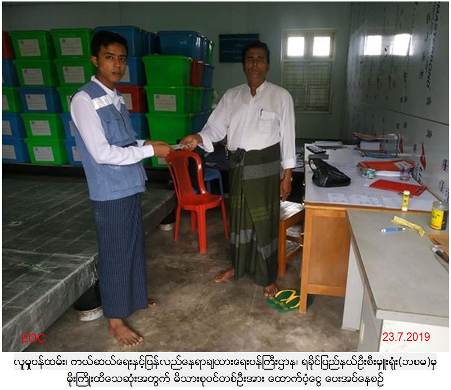 မှုဝန်ထမ်း၊ ကယ်ဆယ်ရေးနှင့်ပြန်လည်နေရာချထားရေးဝန်ကြီးဌာန၊ ရခိုင်ပြည်နယ်ဦးစီးမှူးရုံးမှ (၂၅.၆.၂၀၁၉)ရက် (၀၈း၃၅)နာရီတွင် စစ်တွေမြို့နယ်၊ ဥယျာဉ်သာကျေးရွာအုပ်စု၊ ခရေမြိုင်ကျေးရွာနေ ဆေတာရာဘေကင်(ဘ)အဒူဆူဗင် အသက်(၃၅)နှစ်မှာ မိုးရွာသွန်းနေစဉ် အိမ်ရှေ့ပြတင်းပေါက်မှ အလင်းတန်းဝင်ရောက်ပြီး မိုးကြိုးပစ်၍ သေဆုံးခဲ့ရာ အဆိုပါ သေဆုံးသူ (၁)ဦးအတွက် သေဆုံးထောက်ပံ့ငွေ (၃၀၀၀၀ဝိ/-)အား (၂၃.၇.၂၀၁၉)ရက်တွင် ထောက်ပံ့ပေးခဲ့ကြောင်း သတင်းရရှိပါသည်။