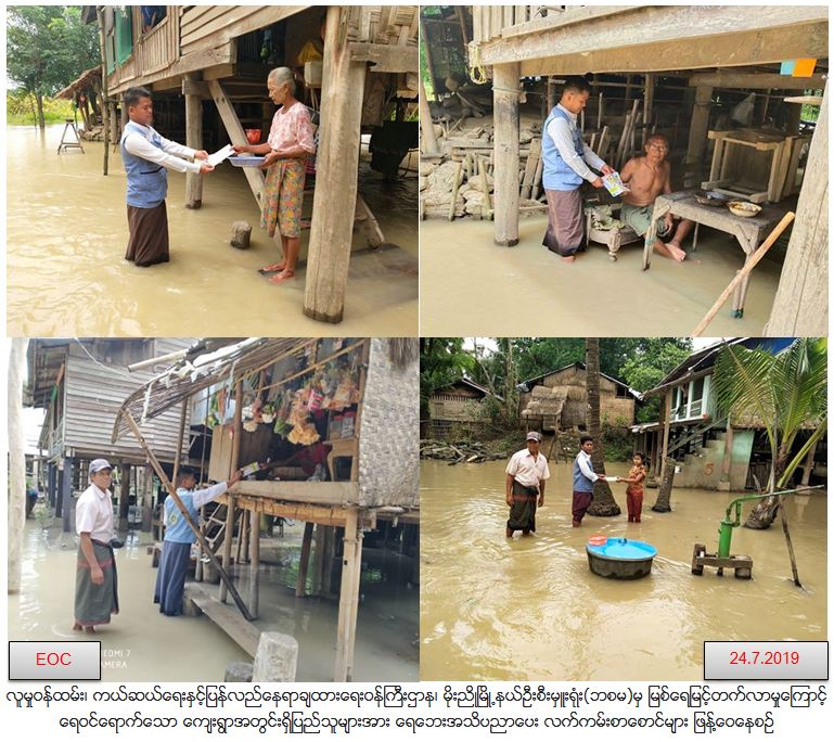 လူမှုဝန်ထမ်း၊ ကယ်ဆယ်ရေးနှင့်ပြန်လည်နေရာချထားရေးဝန်ကြီးဌာန၊ ဘေးအန္တရာယ်ဆိုင်ရာစီမံခန့်ခွဲမှုဦးစီးဌာန၊ မိုးညိုမြို့နယ်ဦးစီးမှူးရုံးမှ တာဝန်ရှိသူများသည် (၂၄.၇.၂၀၁၉) ရက်နေ့ နံနက်(၁၀း၃၀)နာရီအချိန်တွင် မိုးညိုမြို့နယ်အတွင်း စိုးရိမ်ရေအမှတ် ကျော်လွန်လာသည့်အတွက် ရေဝင်ရောက်သည့် အနိမ့်ပိုင်းကျေးရွာများရှိပြည်သူများအား ဆောင်ရန်၊ ရှောင်ရန်များကို အသိပညာပေး ဟောပြောခဲ့၍ ရေဘေးအသိပညာပေးလက်ကမ်းစာစောင်များ ဖြန့်ဝေခဲ့ကြောင်း သတင်းရရှိပါသည်။