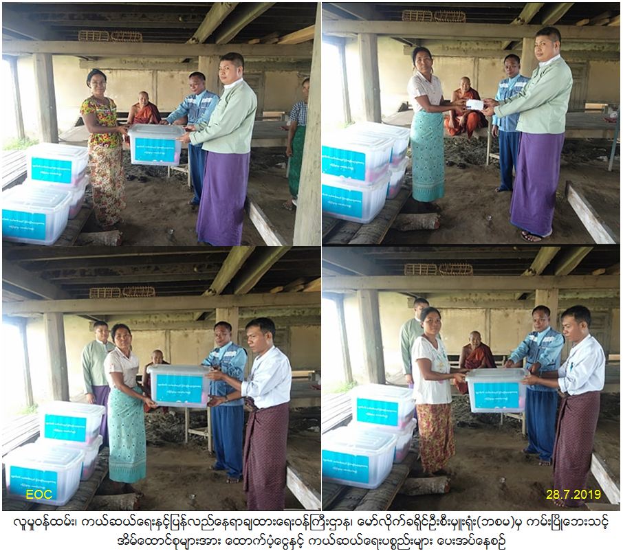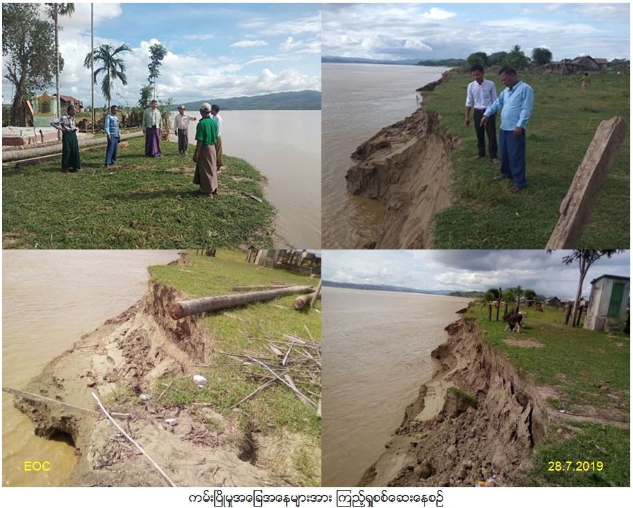လူမှုဝန်ထမ်း၊ ကယ်ဆယ်ရေးနှင့်ပြန်လည်နေရာချထားရေးဝန်ကြီးဌာန၊ ဘေးအန္တရာယ်ဆိုင်ရာစီမံခန့်ခွဲမှုဦးစီးဌာန၊ မော်လိုက်ခရိုင်ဦးစီးမှူးရုံးမှ တာဝန်ရှိသူများသည် ချင်းတွင်းမြစ်ရေမြင့်တက်မှုကြောင့် ကမ်းပါးပြိုကျနေမှုများအား(၂၈-၇-၂၀၁၉)ရက်နေ့တွင် မြို့နယ်အုပ်ရေးမှူးနှင့်အတူကွင်းဆင်းကြည့်ရှု့စစ်ဆေးခဲ့ပြီး (၂၂-၇-၂၀၁၉)နေ့နှင့်(၂၆-၇-၂၀၁၉)ရက်နေ့များတွင် ကမ်းပြိုဘေးကြောင့် ကြိုတင်ဖျက်သိမ်းအိမ်ထောင်စု(၄)စု လူဦးရေ(၂၆)ဦးအတွက် စုစုပေါင်းထောက်ပံ့ငွေ(၄၅၄၆၀ဝိ/-)ကျပ်နှင့် ကယ်ဆယ်ရေးပစ္စည်း(၁၀)မျိုး (၄)အိမ်ထောင်စာအား (၂၈-၇-၂၀၁၉)နေ့တွင် ဘေးသင့်ပြည်သူများထံ သွားရောက်ထောက်ပံ့ခဲ့ကြောင်း သတင်းရရှိပါသည်။