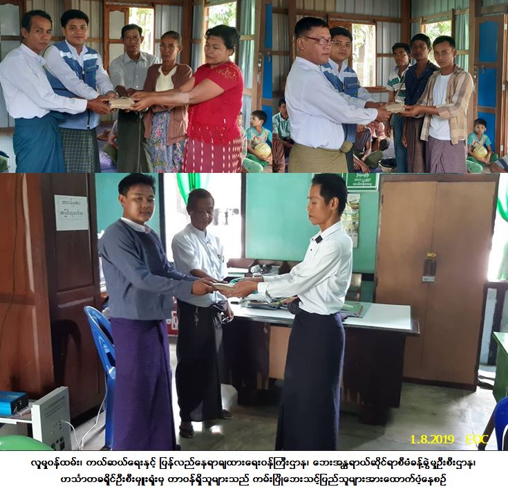 လူမှုဝန်ထမ်း၊ ကယ်ဆယ်ရေးနှင့် ပြန်လည်နေရာချထားရေးဝန်ကြီးဌာန၊ ဘေးအန္တရာယ်ဆိုင်ရာစီမံခန့်ခွဲမှုဦးစီး ဌာန၊ ဟင်္သာတခရိုင်ဦးစီးမှူးရုံးမှ တာဝန်ရှိသူများသည် ဟင်္သာတမြို့နယ်၊ သက်ကယ်ပြင်အုပ်စု၊ ပေါ်သစ် ကျေးရွာ၊ အင်းဂရမ်းအုပ်စု၊ အုတ်သျှစ်ကုန်းကျေးရွာနှင့် မြို့ကွင်းအုပ်စု၊ အလယ်စုကျေးရွာတို့၌(၃၁-၇-၂၀၁၉) ရက်နေ့တွင် ဖြစ်ပွားခဲ့သော ကမ်းပြိုဘေးကြောင့် ပြောင်းရွှေ့အိမ်ခြေ (၃၀) လုံးရှိ လူဦးရေ (၁၂၉) ဦးဘေးသင့်ခဲ့ရာ အဆိုပါဘေးသင့်ပြည်သူများအတွက် အိမ်ဆောက်ပစ္စည်းဖိုးထောက်ပံ့ငွေ (၃,၀၀၀,၀၀၀/-) ကျပ်၊ ဆန်ရိက္ခာ (၇) ရက်စာဖိုးထောက်ပံ့ငွေ (၂၇၀,၉၀၀/-) ကျပ်၊ စုစုပေါင်း ကယ်ဆယ်ရေးထောက်ပံ့ငွေ (၃,၂၇၀,၉၀၀/-) ကျပ်ကို (၁-၈-၂၀၁၉) ရက်နေ့တွင် ဘေးသင့်ပြည်သူများ လက်ဝယ်သို့အရောက် ထောက်ပံ့ပေးအပ်ခဲ့ပါကြောင်း သတင်းရရှိပါသည်။