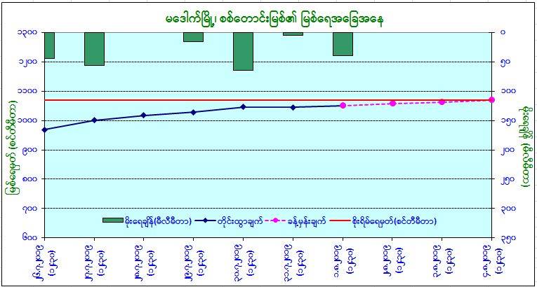 ၂၀၁၉ ခုနှစ်၊ သြဂုတ်လ (၁)ရက်နေ့၊ မြန်မာစံတော်ချိန် (၁၅:၀၀) နာရီ အချိန်တွင် မိုးလေဝသနှင့်ဇလဗေဒညွန်ကြားမှုဦးစီးဌာနမှ ထုတ်ပြန်သည့် မြစ်ရေကြီးခြင်းသတိပေးချက်ကို အောက်ပါအတိုင်း ထုတ်ပြန်ထားပါသည္။
