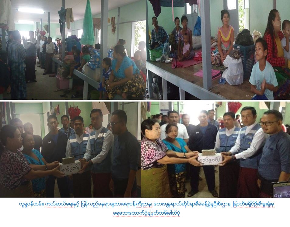 လူမှုဝန်ထမ်း၊ ကယ်ဆယ်ရေးနှင့် ပြန်လည်နေရာချထားရေးဝန်ကြီးဌာန၊ ဘေးအန္တရာယ်ဆိုင်ရာစီမံခန့်ခွဲမှုဦးစီးဌာန၊ မြဝတီခရိုင်ဦးစီးမှူးရုံးမှ တာဝန်ရှိသူများသည် (၃.၈.၂၀၁၉)ရက်နေ့တွင် မိုးအဆက်မပြတ်ရွာသွန်းပြီး သောင်ရင်းမြစ်ရေလျှံမှုကြောင့် ကျောက်လုံးကြီးကယ်ဆယ်ရေးစခန်းသို့ ရွှေ့ပြောင်းခဲ့ရသည့် အိမ်ထောင်စု(၉၁)စု၊ လူဦးရေ (၃၈၉)ဦးအတွက် (၇)ရက်စာ ဆန်ရိက္ခာဖိုးငွေ (၈၁၆၉ဝဝိ/-)အား ထောက်ပံ့ပေးခဲ့ပါကြောင်း သတင်းရရှိပါသည်။