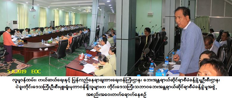 လူမှုဝန်ထမ်း၊ ကယ်ဆယ်ရေးနှင့် ပြန်လည်နေရာချထားရေးဝန်ကြီးဌာန၊ ဘေးအန္တရာယ်ဆိုင်ရာစီမံခန့်ခွဲမှုဦးစီး ဌာန၊ ပဲခူးတိုင်းဒေသကြီးဦးစီးမှူးရုံးမှတာဝန်ရှိသူများသည် (၅-၈-၂၀၁၉) ရက်နေ့၊ နံနက် (၁၀း၀၀) နာရီအချိန်တွင် ပဲခူးတိုင်းဒေသကြီးအစိုးရအဖွဲ့ရုံး၊ တော်ဝင်ဟံသာခန်းမ၌ တိုင်းဒေသကြီးသဘာဝ ဘေးအန္တရာယ်ဆိုင်ရာစီမံခန့်ခွဲမှုအဖွဲ့ အစည်းအဝေးကို ကျင်းပပြုလုပ်ခဲ့ရာ အစိုးရအဖွဲ့ဝန်ကြီးချုပ်၊ ဝန်ကြီးများ၊ ဌာနဆိုင်ရာအကြီးအကဲများ၊ စုစုပေါင်း လူဦးရေ (၆၀) ဦးတက်ရောက်ခဲ့ပါသည်။ အဆိုပါအစည်းအဝေး၌ ဝန်ကြီးချုပ်က လမ်းညွှန်အမှာစကားပြောကြားခဲ့ပြီး ဝန်ကြီးဌာနများမှ တာဝန်ရှိသူများ၊ အစိုးရအဖွဲ့မှ တာဝန်ရှိသူများနှင့် သဘာဝဘေးအန္တရာယ်ဆိုင်ရာ ဆပ်ကော်မတီ (၁၂) ခုမှ တာဝန်ရှိသူများက ပါဝင်ဆွေးနွေးခဲ့ကာ ၂၀၁၈ ခုနှစ်အတွက် ပဲခူးတိုင်းဒေသကြီးသဘာဝဘေးန္တရာယ်နှင့်ပတ်သက်၍ စုစုပေါင်းထောက်ပံ့ပေးနိုင်ခဲ့မှုမှာ ကျပ်(၄.၂၂၄)ဘီလီယံဖြစ်ပါကြောင်း သတင်းရရှိပါသည်။