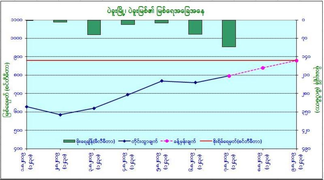 ယနေ့မြန်မာစံတော်ချိန် (၁၄:၃၀)နာရီအချိန် တိုင်းထွာချက်အရ ပဲခူးမြစ်ရေသည် ပဲခူးမြို့တွင် ယင်းမြို့၏ စိုးရိမ်ရေမှတ်အောက် (၃)ပေခန့်တွင် ရောက်ရှိနေပါသည်။ အဆိုပါမြစ်ရေသည် နောက်(၂) ရက်အတွင်း ယင်းမြို့၏ စိုးရိမ်ရေမှတ်သို့ ရောက်ရှိနိုင်ပါသည်။