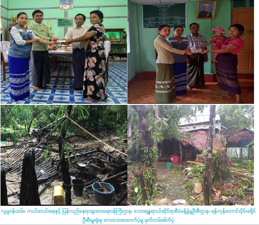 လူမှုဝန်ထမ်း၊ ကယ်ဆယ်ရေးနှင့် ပြန်လည်နေရာချထားရေးဝန်ကြီးဌာန၊ ဘေးအန္တရာယ်ဆိုင်ရာစီမံခန့်ခွဲမှုဦးစီးဌာန၊ ရန်ကုန်တောင်းပိုင်းခရိုင်ဦးစီးမှူးရုံးမှ တာဝန်ရှိသူများသည် (၈-၈-၂၀၁၉)ရက်နေ့တွင် ရန်ကုန်တောင်ပိုင်းခရိုင်၊ တွံတေးမြို့နယ်၊ ကျွန်းတောရပ်ကွက်၊ ကန်သာယာ(၉)လမ်းနှင့် ကျိုက်သလဲကျေးရွာအုပ်စု လာကပုံကျေးရွာတွင် (၄.၇.၂၀၁၉)ရက်နေ့နှင့် (၇.၈.၂၀၁၉)ရက်နေ့များတွင် လေပြင်းတိုက်ခတ်မှုကြောင့် အမိုးပျက်စီးအိမ်ခြေ(၂)လုံး၊ ပြိုကျ ပျက်စီးအိမ်ခြေ(၁)လုံး၊ အိမ်ထောင်စု(၃)စုမှ လူဦးရေ(၁၉)ဦးတို့ လေဘေးသင့်ခဲ့ပါသဖြင့် အိမ်ဆောက် ပစ္စည်းဖိုး(၁၆၅၀၀၀/-)နှင့် ဆန်ရိက္ခာ(၇)ရက်စာ (၃၉၉၀၀/-) စုစုပေါင်းထောက်ပံ့ငွေကျပ် (၂၀၄၉၀၀/-)အား ရန်ကုန် တောင်ပိုင်းခရိုင်ဦးစီးမှူးရုံး(သန်လျင်)မှ အထွေထွေအုပ်ချုပ်ရေးဦးစီးဌာနမှ တာဝန်ရှိသူများနှင်အတူ ဘေးသင့် ပြည်သူများ၏ လက်ဝယ်သို့ သွားရောက်ထောက်ပံ့ပေးခဲ့ပါကြောင်း သတင်းရရှိပါသည်။