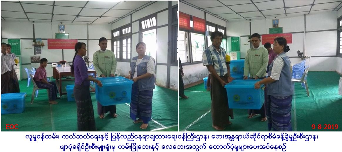 လူမှုဝန်ထမ်း၊ ကယ်ဆယ်ရေးနှင့် ပြန်လည်နေရာချထားရေးဝန်ကြီးဌာန၊ ဘေးအန္တရာယ်ဆိုင်ရာစီမံခန့်ခွဲမှုဦးစီးဌာန၊ ဖျာပုံခရိုင်ဦးစီးမှူးရုံးမှ တာဝန်ရှိသူများသည် (၇-၈-၂၀၁၉) ရက်နေ့တွင် ကျိုက်လတ်မြို့နယ်၊ ဒါချောင်းကျေးရွာအုပ်စု၊ ကျွန်းကလေးကျေးရွာတွင် မြစ်ရေတိုက်စားမှု ကြောင့် ကမ်းပါးပြိုဘေးဖြစ်ပွားခဲ့ရာ ကြိုတင်ပြောင်းရွှေ့နေအိမ်(၄)လုံးအတွက် အိမ်ဆောက်ပစ္စည်းဖိုးငွေ (၄၀၀၀၀၀)ကျပ်၊ ဆန်ဖိုးငွေ (၇)ရက်စာ လူ(၂၀)ဦးအတွက် (၄၂၀၀၀)ကျပ်တို့ကိုလည်းကောင်း၊ ပရိုက်ဝကျေးရွာအုပ်စု၊ ပရိုက်ဝကျေးရွာတွင် (၇-၈-၂၀၁၉) ရက်နေ့တွင် ဖြစ်ပွားခဲ့သော လေဘေးသင့် ပြိုလဲအိမ်ထောင်စု(၁)အတွက် အိမ်ဆောက်ပစ်စည်းဖိုးငွေ (၁၀၀၀၀၀)ကျပ်၊ ဆန်ဖိုးငွေ လူ(၄)ဦးအတွက် (၄၂၀၀)ကျပ်၊ ကယ်ဆယ်ရေးပစ္စည်း တစ်အိမ်ထောင်စုစာ(၁၆)မျိုးတို့ကိုလည်းကောင်း (၉-၈-၂၀၁၉)ရက်နေ့တွင် ဘေးသင့်ပြည်သူများ လက်ဝယ်သို့ ကွင်းဆင်း သွားရောက်ထောက်ပံ့ပေးခဲ့ပါကြောင်း သတင်းရရှိပါသည်။
