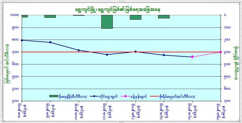 ယနေ့မြန်မာစံတော်ချိန် (၁၁:၃၀)နာရီအချိန် တိုင်းထွာချက်အရ ရွှေကျင်မြစ်ရေသည် ရွှေကျင်မြို့တွင် ယင်းမြို့၏ စိုးရိမ်ရေမှတ်အောက် (၁)ပေခန့်တွင် ရောက်ရှိနေပါသည်။ အဆိုပါမြစ်ရေသည် နောက်(၁)ရက်အတွင်း ယင်းမြို့၏ စိုးရိမ်ရေမှတ်သို့ ရောက်ရှိနိုင်ပါသည်။