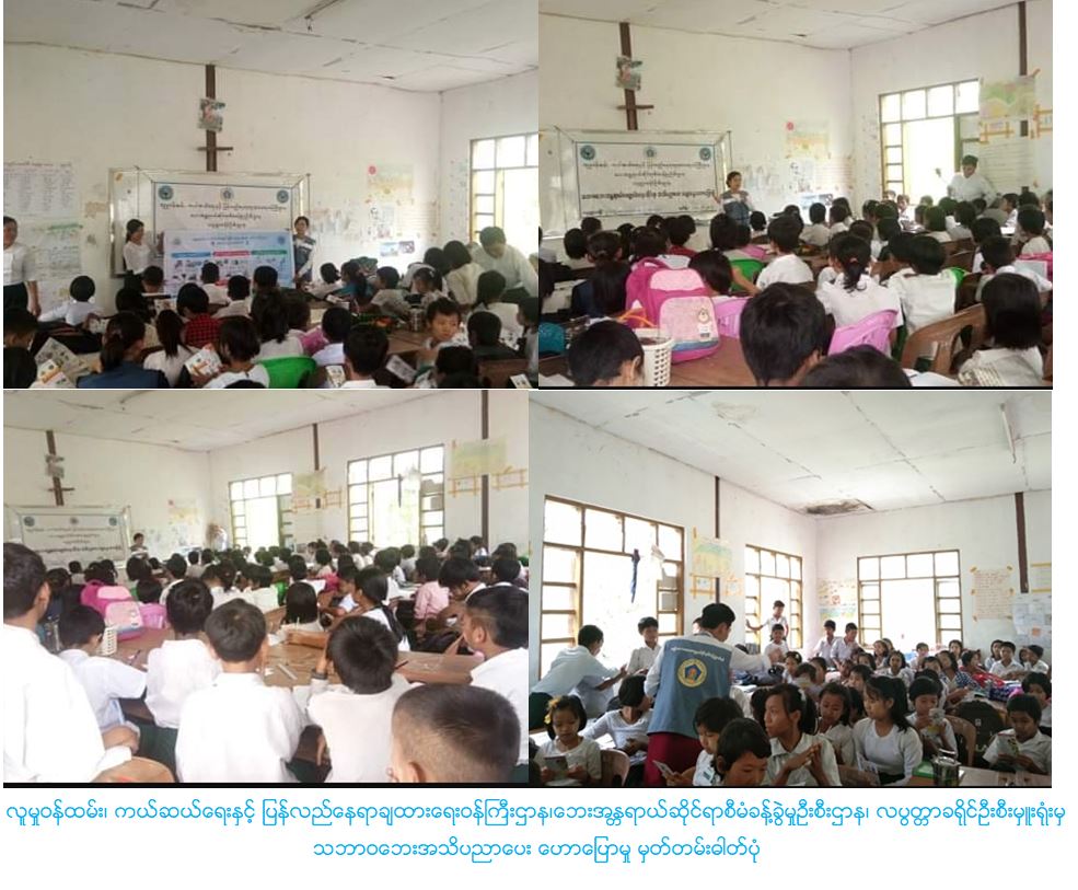 လူမှုဝန်ထမ်း၊ ကယ်ဆယ်ရေးနှင့် ပြန်လည်နေရာချထားရေးဝန်ကြီးဌာန၊ ဘေးအန္တရာယ်ဆိုင်ရာစီမံခန့်ခွဲမှုဦးစီးဌာန၊ လပွတ္တာခရိုင်ဦးစီးမှူးရုံးမှ တာဝန်ရှိသူများသည် (၂၁.၈.၂၀၁၉)ရက်နေ့ (၀၉း၃၀)နာရီအချိန်တွင် လပွတ္တာမြို့ နယ်သုံးမိုင်မြို့သစ် အထက်တန်းကျောင်းမှ ကျောင်းသား/သူ (၂၅၀)ဦးတို့အား သဘာဝဘေးလျော့ပါးရေး အသိပညာပေးဟောပြောခြင်း ပြုလုပ်လုပ်ခဲ့ပြီး ဘေး(၈)မျိုး လက်ကမ်းစာစောင်များ ဝေငှခြင်းနှင့် ကျောင်းအုပ် ဆရာမကြီးထံသို့ မုန်တိုင်းဗွီနှိုင်း ပေးအပ်ခဲ့ပါကြောင်း သတင်းရရှိပါသည်။