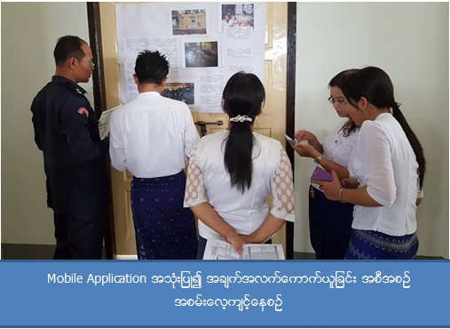 ကယ်ဆယ်ရေးနှင့် ပြန်လည်နေရာချ ထားရေးဦးစီးဌာန နှင့် UNOCHA အဖွဲ့တို့ပူးပေါင်းဆောင်ရွက်ပြီး mobile application အသုံးပြု၍ အချက်အလက်များ ကောက်ယူခြင်း ပါဝင်သော အရေးပေါ်တုံ့ပြန်မှုဆိုင်ရာ ကြိုတင်ပြင်ဆင်ရေးအစီအစဉ် နှင့် ပတ်သက်၍ “Half-day Awareness Session on Assessment Preparedness (MIRA and Kobo updates)” ရှင်းလင်းဆွေးနွေးခြင်း အစီအစဉ်ကို (၁၂-၅-၂၀၁၆) ရက်နေ့တွင် EOC အဆောက်အဦ အသစ်၌ ကျင်းပခဲ့ ပါသည်၊၊ အဆိုပါ ဆွေးနွေးပွဲသို့ လူမှုဝန်ထမ်း၊ ကယ်ဆယ်ရေး နှင့်ပြန်လည် နေရာချထားရေးဝန်ကြီးဌာန၊ အမြဲတမ်းအတွင်းဝန်၊ ကယ်ဆယ်ရေးနှင့် ပြန်လည်နေရာ ချထားရေးဦးစီးဌာနမှ ဒုတိယညွှန်ကြားရေးမှူးချုပ်၊ ညွှန်ကြားရေးမှူးများ၊ အရာထမ်း၊ အမှုထမ်းများ နှင့် အထွေထွေ အုပ်ချုပ်ရေးဦးစီးဌာန၊ မီးသတ် ဦးစီးဌာန၊ မြန်မာနိုင်ငံ ကြက်ခြေနီ အသင်း၊ UNOCHA တို့မှ တာဝန်ရှိသူကိုယ်စားလှယ်(၂) ဦးစီ တက်ရောက်ခဲ့ကြပါသည်၊၊