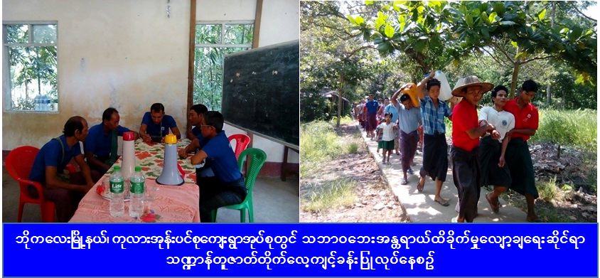 (၁၃-၅-၂၀၁၆) ရက်နေ့တွင် ကယ်ဆယ်ရေးနှင့် ပြန်လည်နေရာချထားရေးဦးစီးဌာန၊ ဖျာပုံခရိုင်ဦးစီး မှူးရုံးမှ တာဝန်ရှိသူများသည် LWF အဖွဲ့နှင့် ပူးပေါင်း၍ သက်ဆိုင်ရာ တာဝန်ရှိသူများနှင့် ညှိနှိုင်းပေါင်းစပ်ပြီး ဘိုကလေးမြို့နယ်၊ ကုလားအုန်းပင်စုကျေး ရွာအုပ်စုအတွင်းရှိ ကျေးရွာများမှ လူဦးရေ ၂၅၀ ဦးတို့ဖြင့် သဘာဝဘေးအန္တရာယ် ထိခိုက်မှု လျော့ချရေးဆိုင်ရာသဏ္ဍာန်တူဇာတ် တိုက်လေ့ကျင့်ခန်း အောင်မြင်စွာကျင်းပပြုလုပ်ပြီးစီးခဲ့ကြောင်း သိရှိရပါသည်။