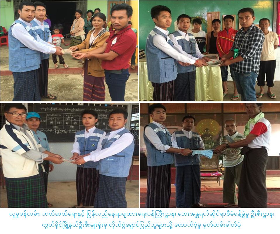 လူမှုဝန်ထမ်း၊ ကယ်ဆယ်ရေးနှင့် ပြန်လည်နေရာချထားရေးဝန်ကြီးဌာန၊ ဘေးအန္တရယ်ဆိုင်ရာစီမံခန့်ခွဲမှု ဦးစီးဌာန၊ ကွတ်ခိုင်မြို့နယ်ဦးစီးမှူးရုံးမှ တာဝန်ရှိသူများသည် ဩဂုတ်လ (၃၀) ရက်နေ့တွင် ကွတ်ခိုင်မြို့နယ် အတွင်းရောက်ရှိနေသော တိုက်ပွဲရှောင်စခန်း(၆)ခု၊ ရပ်ကွက်-၄ ခါနန်မူကြိုကျောင်း လူဦးရေ (၆၈)ဦး၊ ရပ်ကွက်-၂ မိဘမဲ့ဂေဟာ လူဦးရေ (၁၀၆) ဦး၊ ရပ်ကွက်-၈ တောင်တန်းဘုန်းတော်ကြီးကျောင်း လူဦးရေ (၁၈၉)ဦး၊ ရပ်ကွက်-၂ တအာင်းယဉ်ကျေးမှုခန်းမ လူဦးရေ (၃၅၃) ဦး၊ ခိုလုံဘုန်းတော်ကြီးကျောင်း လူဦးရေ (၅၀၄) ဦး၊ ကာလိုင်ဘုရားရှိခိုးကျောင်း (၂၂၉)ဦး၊ စုစုပေါင်းလူဦးရေ (၁၄၅၅)ဦးအတွက် ဆန်ရိက္ခာ (၇) ရက်စာအတွက် စုစုပေါင်း ထောက်ပံ့မှု (၃၀၅၅၅၀၀/-)အား ကွင်းဆင်းထောက်ပံ့ရေး ဆောင်ရွက်ခဲ့ပါကြောင်း သတင်းရရှိပါသည်။
