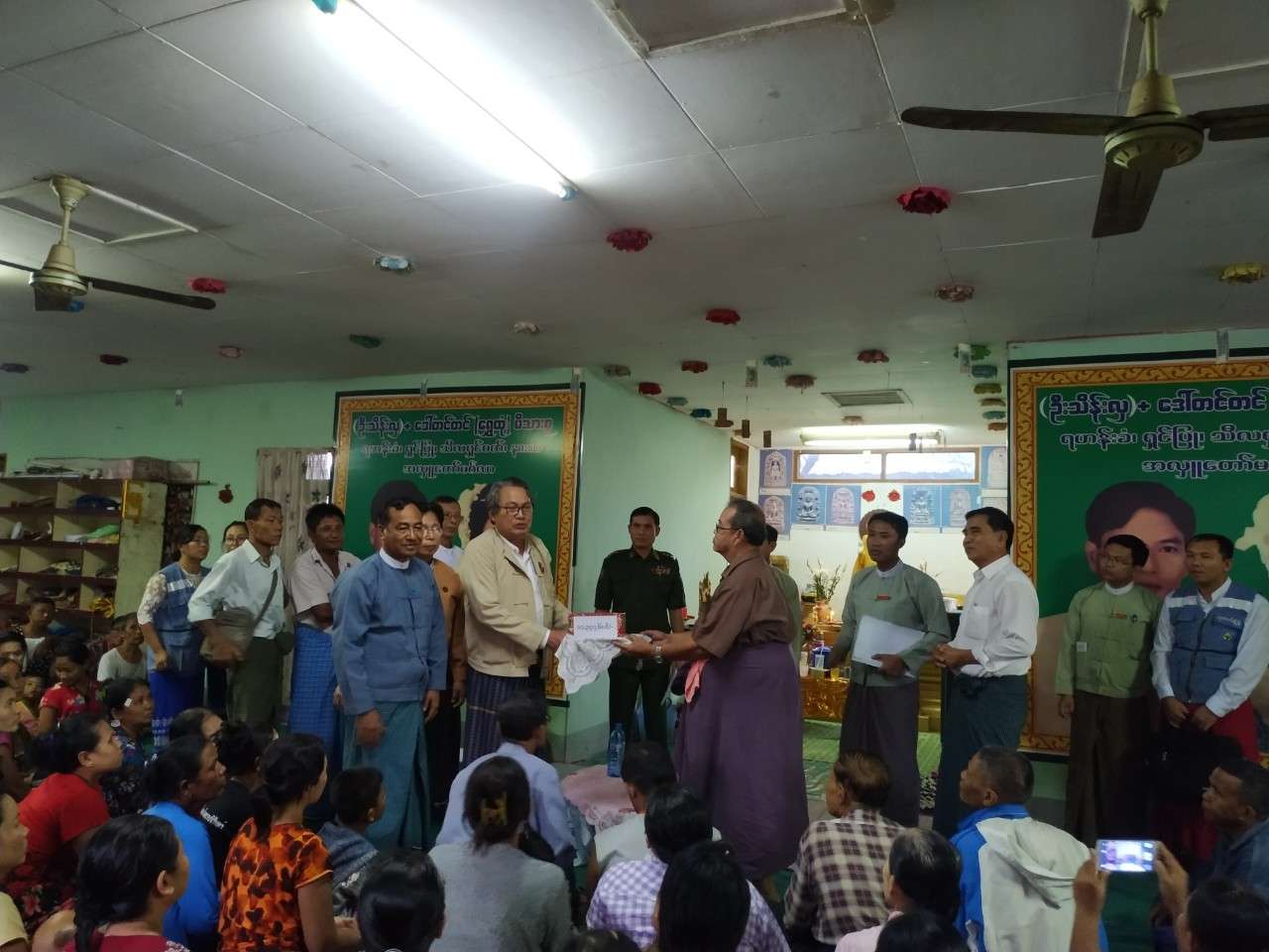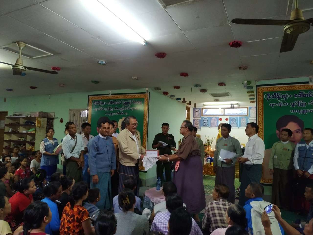မြန္ျပည္နယ္ဝန္ႀကီးခ်ဳပ္ ေဒါက္တာေအးဇံ ဉီးေဆာင္၍ ေဘးအႏၲရာယ္ဆိုင္ရာစီမံခန႔္ခြဲမႈဉီးစီးဌာန၊ မြန္ ျပည္နယ္ဉီးစီးမႉး႐ုံးမွတာဝန္ရွိသူမ်ား၊ သက္ဆိုင္ရာဌာနမ်ားမွ တာဝန္ရွိသူမ်ားသည္ ေလဆင္ႏွာေမာင္း တိုက္ခတ္ မႈဒဏ္ခံစားခဲ့ရသည့္ ရပ္ကြက္မ်ားသို႔ သြားေရာက္ၾကည့္ရႈ၍ ေဘးသင့္ ျပည္သူမ်ားႏွင့္ေတြ႕ဆုံ အားေပးကူညီမႈ မ်ားေဆာင္႐ြက္ခဲ့ရာ ညေနပိုင္း၌ ေ႐ႊၿမိဳင္သီရိရပ္ကြက္၊ စိန္ခရင္းဘုန္းႀကီးေက်ာင္းသို႔ေရာက္ရွိၿပီး ေ႐ႊၿမိဳင္သီရိ ရပ္ကြက္မွ ပ်က္စီးေနအိမ္ (၁၈၅) လုံးႏွင့္ ေဘးသင့္ျပည္သူ (၁၀၅၆) ဉီးတို႔အတြက္ လူမႈဝန္ထမ္း၊ ကယ္ဆယ္ေရး ႏွင့္ ျပန္လည္ေနရာခ်ထားေရးဝန္ႀကီးဌာနမွ အိမ္ေဆာက္ပစၥည္းဖိုးႏွင့္ ဆန္ရိကၡာဖိုးစုစုေပါင္း (၁၁,၃၄၇,၆၀၀/-) (က်ပ္၁၁၃သိန္းေက်ာ္)ႏွင့္မြန္ျပည္နယ္အစိုးရအဖြဲ႕မွလည္း အိမ္ေဆာက္ပစၥည္းဖိုးႏွင့္ ဆန္ရိကၡာဖိုးစုစုေပါင္း (၁၁,၃၄၇,၆၀၀/-) (က်ပ္၁၁၃သိန္းေက်ာ္) တို႔ကို ေထာက္ပံ့ေပးခဲ့ေၾကာင္းႏွင့္ က်န္ရွိသည့္ရပ္ကြက္မ်ားမွ ေဘးသင့္ ျပည္သူမ်ားအတြက္ ေထာက္ပံ့ကူညီမႈမ်ား ဆက္လက္ေဆာင္႐ြက္လ်က္ရွိေၾကာင္း သတင္းရရွိပါသည္။