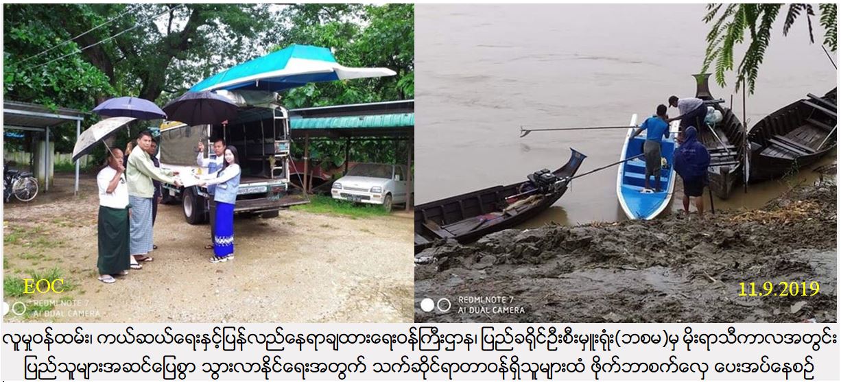 လူမှုဝန်ထမ်း၊ ကယ်ဆယ်ရေးနှင့်ပြန်လည်နေရာချထားရေးဝန်ကြီးဌာန၊ ဘေးအန္တရာယ်ဆိုင်ရာစီမံခန့်ခွဲမှုဦးစီးဌာန၊ ပြည်ခရိုင်ဦးစီးမှူးရုံးမှ တာဝန်ရှိသူများသည် (၁၁-၉-၂၀၁၉) ရက်နေ့တွင် ရွှေတောင်မြို့နယ်၊ ရွှေဟင်္သာကျေးရွာအုပ်စု၊ ညောင်ကုန်းကျေးရွာ စက်လှေရရှိရေးကော်မတီ သို့ ဒေသခံကျောင်းသားကျောင်းသူများနှင့် ကျေးရွာသူကျေးရွာသားများ မိုးရာသီကာလရေကြီးရေလျှံချိန်တွင် သွားလာရေး အဆင်ပြေချောမွေ့စေရန် ဦးစီးဌာနမှ ပံ့ပိုးကူညီသော ဖိုက်ဘာစက်လှေ (၁) စီးအား ပြည်သူများလက်ဝယ်အရောက် သွားရောက်ပေးအပ်ခဲ့ကြောင်း သတင်းရရှိပါသည်။