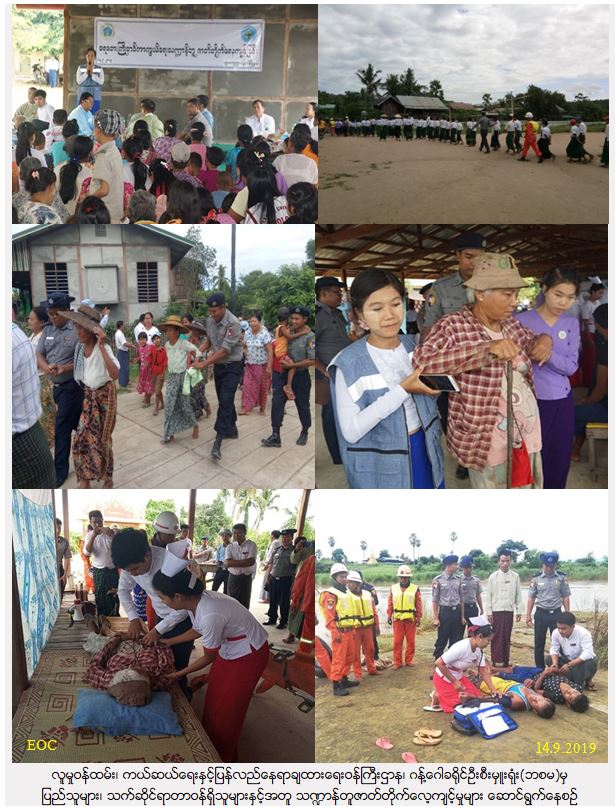 လူမှုဝန်ထမ်း၊ ကယ်ဆယ်ရေးနှင့်ပြန်လည်နေရာချထားရေးဝန်ကြီးဌာန၊ ဘေးအန္တရာယ်ဆိုင်ရာစီမံခန့်ခွဲမှုဦးစီးဌာန၊ ဂန့်ဂေါခရိုင်ဦးစီးမှူးရုံးမှ တာဝန်ရှိသူများသည် ခရိုင်အဆင့်သဘာဝဘေးစီမံခန့်ခွဲမှုကော်မတီ၏ကြီးကြပ်မှုဖြင့် ဂန့်ဂေါခရိုင်၊ ဂန့်ဂေါမြို့နယ်၊ ပျားကျေးရွာအုပ်စု၊ ပျားကျေးရွာတွင်(၁၄-၉-၂၀၁၉)ရက်နေ့၊ နံနက်(၀၉း၀၀)နာရီအချိန်၌ မမျှော်လင့်နိုင်သော သဘာဝဘေးအန္တရာယ်တစ်ခုခုကြောင့် မြစ်သာတမံဆည်ရှိ ရေများကျိုးပေါက်၍ ရေဘေးအန္တရာယ်ခံစားရနိုင်ခြေရှိသည့် ဆည်အောက်ရှိကျေးရွာများမှ ပြည်သူလူထု အသက်အိုးအိမ်ပစ္စည်းများ ဆုံးရှုံးမှုလျော့နည်းနိုင်သမျှ လျော့နည်းစေရန် ရည်ရွယ်၍ ရေဘေးကြိုတင်ကာကွယ်ရေးသဏ္ဍာန်တူဇာတ်တိုက်လေ့ကျင့်ခြင်းကို မြို့နယ်အဆင့်သဘာဝဘေးစီမံခန့်ခွဲမှုကော်မတီ၊ တည်ဆောက်ရေး(၈)၊ ရဲတပ်ဖွဲ့၊ မီးသတ်ဦးစီးဌာန၊ ကျန်းမာရေးဦးစီးဌာန၊ မိခင်နှင့်ကလေးစောင့်ရှောက်ရေးအသင်းနှင့် ကျေးရွာပြည်သူလူထု စုစုပေါင်း(၄၀၈)ဦးတို့ ပူးပေါင်းဆောင်ရွက်ခဲ့ပါကြောင်း သတင်းရရှိပါသည်။