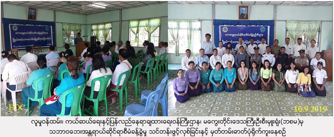 လူမှုဝန်ထမ်း၊ ကယ်ဆယ်ရေးနှင့်ပြန်လည် နေရာချထားရေးဝန်ကြီးဌာ၊ ဘေးအန္တရာယ်ဆိုင်ရာစီမံခန့်ခွဲမှုဦးစီးဌာန၊ မကွေးတိုင်းဒေသကြီးဦးစီးမှူးရုံးမှ တာဝန်ရှိသူများသည်(၁၆.၉.၂၀၁၉) ရက်နေ့ မကွေးမြို့ပြန်ကြားရေးနှင့် ပြည်သူ့ဆက်ဆံရေးဦးစီးဌာနတွင် မြို့နယ်အဆင့်သဘာဝဘေးစီမံခန့်ခွဲမှုဆိုင်ရာအခြေခံသင်တန်းကို အမှာစကားပြောကြား၍ ဖွင့်လှစ်ပေးခဲ့ပါသည်။ သင်တန်းဖွင့်ပွဲသို့ မြို့နယ်အဆင့်သဘာဝဘေးစီမံခန့်ခွဲမှုအဖွ့ဲမှ တာဝန်ရှိသူများ တက်ရောက်ကြပြီး သဘာဝဘေးဖြစ်စဉ်များတွင် ပူးပေါင်းပါဝင်ဆောင်ရွက်လျက်ရှိသည့် အရပ်ဖက်အဖွ့ဲအစည်း(၁၇)ဖွ့ဲမှ သင်တန်းသားသင်တန်းသူ(၂၅)ဦး တက်ရောက်ပြီး သင်တန်းကာလ(၁၆.၉. ၂၀၁၉)ရက်မှ(၂၀.၉.၂၀၁၉)ရက်အထိ(၅)ရက်ကြာမြင့်မည်ဖြစ်ကြောင်း သတင်းရရှိပါသည်။