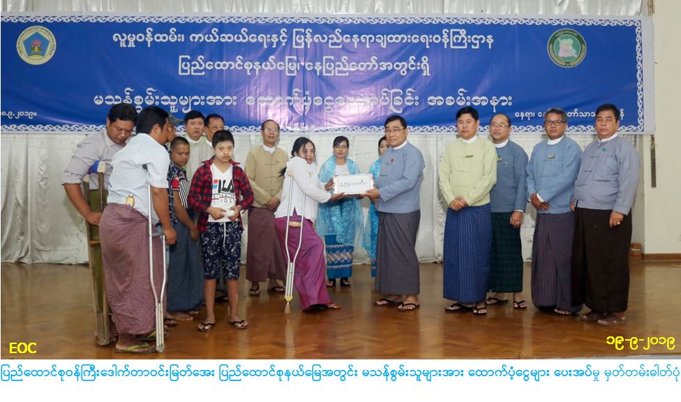 ယင်းနောက် အခမ်းအနားသို့ ကိုယ်တိုင်တက်ရောက်လာကြသော မသန်စွမ်းသူများအား ထောက်ပံ့ငွေများကို လက်ဝယ်အရောက်ပေးအပ်ခဲ့ကြပြီး ထောက်ပံ့မှုများအတွက် မသန်စွမ်းသူ တစ်ဦးက ကျေးဇူးတင်စကားပြောကြားခဲ့ကြောင်း သတင်းရရှိပါသည်။