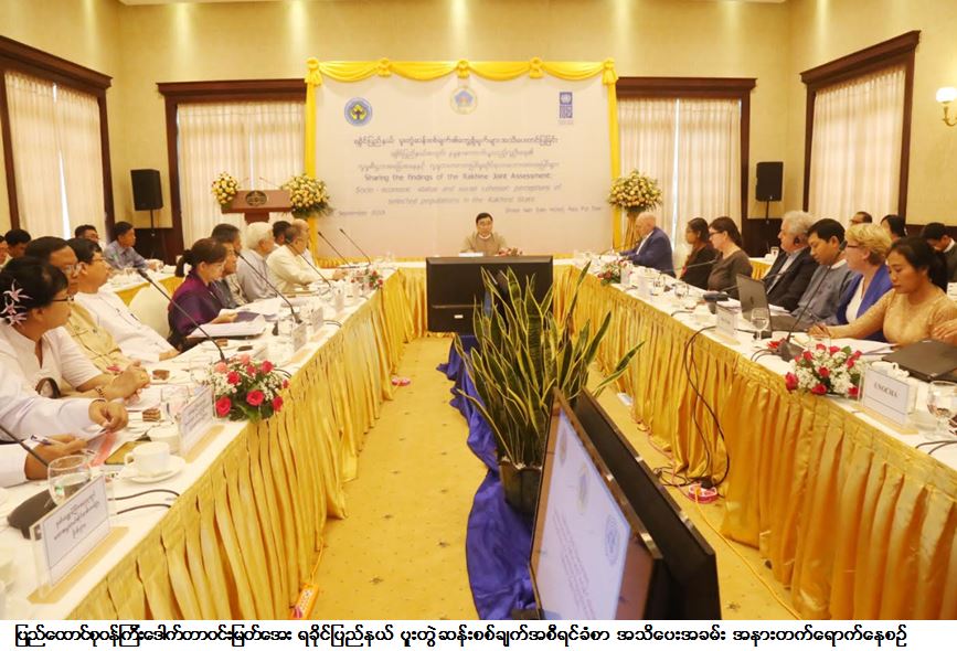 လူမှုဝန်ထမ်း၊ ကယ်ဆယ်ရေးနှင့်ပြန်လည်နေရာချထားရေးဝန်ကြီးဌာနနှင့် ကုလသမဂ္ဂ ဖွံ့ဖြိုးမှုအစီ အစဉ် (UNDP)တို့ ပူးပေါင်း၍ ရခိုင်ပြည်နယ် ပူးတွဲဆန်းစစ်ချက် အစီရင်ခံစာ အသိပေးအခမ်းအနားအား ယနေ့ နေ့လယ်ပိုင်းတွင် နေပြည်တော်ရှိ ရွှေစံအိမ်ဟိုတယ်၌ ကျင်းပခဲ့ရာ အဆိုပါအခမ်းအနားသို့ လူမှုဝန်ထမ်း၊ ကယ်ဆယ်ရေးနှင့် ပြန်လည်နေရာချထားရေးဝန်ကြီးဌာန ပြည်ထောင်စုဝန်ကြီး ဒေါက်တာဝင်းမြတ်အေး၊ နိုင်ငံတော်အတိုင်ပင်ခံရုံးဝန်ကြီးဌာန ဒုတိယဝန်ကြီးဦးခင်မောင်တင်၊ လူမှုဝန်ထမ်း၊ ကယ်ဆယ်ရေးနှင့် ပြန်လည်နေရာချထားရေးဝန်ကြီးဌာန ဒုတိယဝန်ကြီးဦးစိုးအောင်၊ ရခိုင်ပြည်နယ် လျှပ်စစ်၊ စက်မှုနှင့် လမ်းပန်းဆက်သွယ်ရေးဝန်ကြီး ဦးအောင်ကျော်ဇံတို့နှင့်အတူ UEHRD ကော်မတီမှ တာဝန်ရှိပုဂ္ဂိုလ်များ၊ ဌာနဆိုင်ရာများမှ ဖိတ်ကြားထားသည့် ဧည့်သည်တော်များ၊ ကုလသမဂ္ဂနှင့် နိုင်ငံတကာအဖွဲ့ အစည်းများမှ ကိုယ်စားလှယ်များ တက်ရောက်ခဲ့ကြပါသည်။