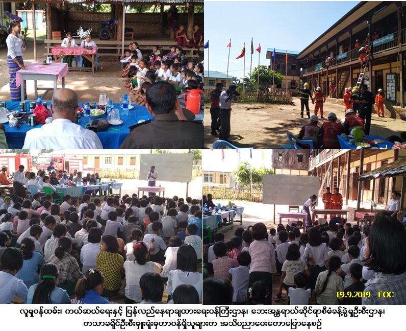 လူမှုဝန်ထမ်း၊ ကယ်ဆယ်ရေးနှင့် ပြန်လည်နေရာချထားရေးဝန်ကြီးဌာန၊ ဘေးအန္တရာယ်ဆိုင်ရာစီမံခန့်ခွဲမှုဦးစီး ဌာန၊ ကသာခရိုင်ဦးစီးမှူးရုံးမှတာဝန်ရှိသူများသည် (၁၉-၉-၂၀၁၉) ရက်နေ့တွင် ကသာခရိုင်၊ ထီးချိုင့်မြို့နယ် တည်တောကျေးရွာ၊ အခြေခံပညာအလယ်တန်းကျောင်း၌ မီးသတ်ဦးစီးဌာနမှ ကျင်းပပြုလုပ်သော ငလျင်ဘေးသဏ္ဌာန်တူဇာတ်တိုက်လေ့ကျင့်ခန်း အခမ်းအနားတွင် ကျောင်းသူ/ကျောင်းသား (၁၀၀) ဦးခန့်နှင့် တက်ရောက်လာကြသောကော်မတီအဖွဲ့ဝင်တို့အား ငလျင်ဘေးအန္တရာယ်ဆိုင်ရာ ဆောင်ရန်/ရှောင်ရန်အချက် များကို အသိပညာပေးဆွေးနွေးဟောပြောခဲ့ပါကြောင်း သတင်းရရှိပါသည်။