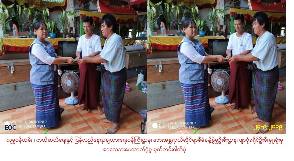 လူမှုဝန်ထမ်း ၊ ကယ်ဆယ်ရေးနှင့် ပြန်လည်နေရာချထားရေးဝန်ကြီးဌာန၊ ဘေးအန္တရာယ်ဆိုင်ရာစီမံခန့့်ခွဲမှုဦးစီးဌာန၊ ဖျာပုံခရိုင်ဦးစီးမှူးရုံးမှ တာဝန်ရှိသူများသည် စက်တင်ဘာလ(၂၃)ရက်နေ့တွင် ဖျာပုံမြို့နယ် အထွေထွေအုပ်ချုပ်ရေး ဦးစီးဌာနအစည်းအဝေးခန်းမတွင် ဖျာပုံမြို့နယ်ကနိချောင်းဝကျေးရွာအုပ်စု ကနိချောင်းဝကျေးရွာရှိ သောက်သုံးရေကန် ပြန်လည်ပြုပြင်ရန်အတွက် ထောက်ပံ့ငွေ(၃၃၇၀၀၀၀)ကျပ်ကို တိုင်းဒေသကြီးလွှတ်တော် ကိုယ်စားလှယ် ဦးဘိုဘိုမင်းဇော်၊ ဖျာပုံမြို့နယ်အုပ်ချုပ်ရေးမှူးနှင့် မြို့နယ်ကော်မတီ အဖွဲ့ဝင်များမှ ကနိချောင်းဝကျေးရွာ သောက်သုံးရေကန်ပြုပြင်ရေးကော်မတီအဖွဲ့ သို့လွှဲပြောင်းပေးအပ်ထောက် ပံ့ခဲ့ပါကြောင်း သတင်းရရှိပါသည်။