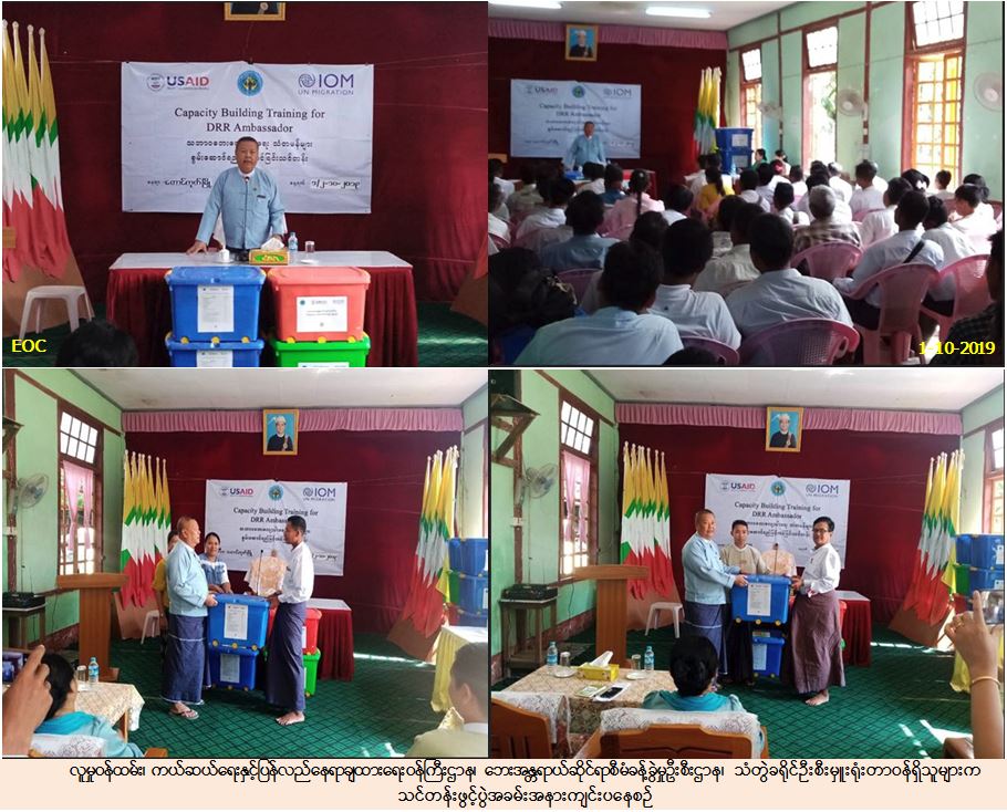 လူမှုဝန်ထမ်း၊ ကယ်ဆယ်ရေးနှင့်ပြန်လည်နေရာချထားရေးဝန်ကြီးဌာန၊ ဘေးအန္တရာယ်ဆိုင်ရာစီမံခန့်ခွဲမှုဦးစီးဌာန၊ သံတွဲခရိုင်ဉီးစီးမှူးရုံးမှတာဝန်ရှိသူများနှင့် ရွှေ့ပြောင်းသွားလာနေထိုင်ခြင်းဆိုင်ရာ နိုင်ငံတကာအဖွဲ့အစည်း (IOM)တို့ ပူးပေါင်း၍ (၁.၁၀.၂၀၁၉)ရက်နေ့ နံနက်(၀၉:၄၀)အချိန်၌ ရခိုင်ပြည်နယ်၊ သံတွဲခရိုင်၊ တောင်ကုတ် မြို့နယ်အထွေထွေအုပ်ချုပ်ရေးဦးစီးဌာနရုံး အစည်းအဝေးခန်းမ၌ သဘာဝဘေးလျော့ပါးရေးသံတမန်များ စွမ်းဆောင်ရည်မြှင့်တင်ခြင်းသင်တန်းနှင့် သဘာဝဘေးလျော့ပါးရေးဆိုင်ရာ အသိပညာပေးအထောက်အကူပြု ပစ္စည်းများပေးအပ်ခြင်းအခမ်းအနားအား ကျင်းပခဲ့ရာ ရခိုင်ပြည်နယ်အစိုးရအဖွဲ့ လူမှုရေးဝန်ကြီးမှတက်ရောက် အဖွင့်အမှာစကားပြောကြားခဲ့ပါသည်။ အဆိုပါသင်တန်းဖွင့်ပွဲအခမ်းအနားသို့ တောင်ကုတ်မြို့နယ် အုပ်ချုပ်ရေးမှူး၊ တောင်ကုတ်မြို့နယ်မှဌာနဆိုင်ရာများ၊ ကြက်ခြေနီတပ်ဖွဲ့ဝင်များ၊ တောင်ကုတ်မြို့နယ်အတွင်းရှိ ရပ်ကွက်ကျေးရွာ(၄၅)ရွာမှ သင်တန်းသားရပ်ကွက်အုပ်ချုပ်ရေးမှူး၊ ရပ်ကျေးစာရေးများနှင့် စေတနာ့ဝန်ထမ်း (VOLUNTEER)များစုစုပေါင်း လူဉီးရေ(၅၅)ဦးတက်ရောက်ခဲ့၍ သင်တန်းကာလမှာ (၂)ရက်ဖြစ်ကြောင်း သတင်း ရရှိပါသည်။