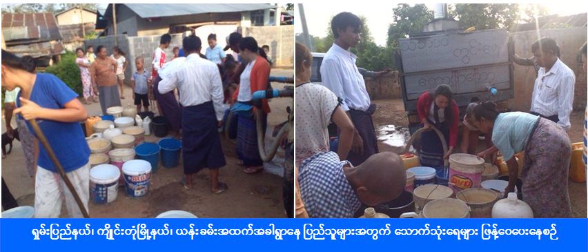လူမှု၀န်ထမ်း၊ ကယ်ဆယ်ရေးနှင့်ပြန်လည်နေရာချထားရေးဝန်ကြီးဌာန၊ ကယ်ဆယ်ရေးနှင့်ပြန်လည်နေရာချထားရေးဦးစီး ဌာန၊ ကျိုင်းတုံခရိုင်ဦးစီးမှူးရုံးမှ တာဝန်ရှိသူများသည် (၁၆-၅-၂၀၁၆) ရက်နေ့တွင် ကျိုင်းတုံမြို့နယ်၊ ယန်းခမ်းအထက် အခါရွာ၌ အိမ်ခြေ (၁၃၀)၊ လူဦးရေ (၈၀၀) ဦးအတွက် ရေဂါလံ (၂၂၅၀) အား သွားရောက်ဖြန့်ဝေပေးပြီးဖြစ်ကြောင်း သိရှိ ရပါသည်။