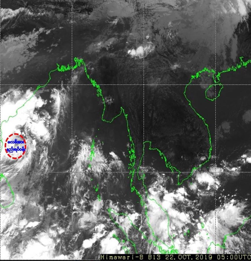 ယနေ့မြန်မာစံတော်ချိန် (၁၁:၃၀)နာရီအချိန် တိုင်းထွာချက်များအရ ဘင်္ဂလား ပင်လယ်အော်အနောက်တောင်ပိုင်း နှင့် ယင်းနှင့်ဆက်စပ်လျက်ရှိသော ဘင်္ဂလားပင်လယ် အော်အနောက်အလယ်ပိုင်းတို့တွင် လေဖိအားနည်းရပ်ဝန်းတစ်ခု ဖြစ်ပေါ်နေပါသည်။