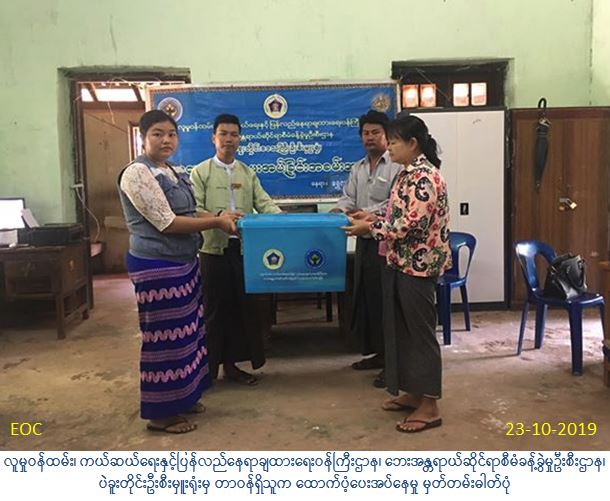 လူမှုဝန်ထမ်း၊ ကယ်ဆယ်ရေးနှင့်ပြန်လည်နေရာချထားရေးဝန်ကြီးဌာန၊ ဘေးအန္တရာယ်ဆိုင်ရာစီမံ ခန့်ခွဲမှုဦးစီးဌာန၊ ပဲခူးတိုင်းဒေသကြီးဦးစီးမှူးရုံးမှ တာဝန်ရှိသူများသည် (၁၃-၁၀-၂၀၁၉) ရက်နေ့ တွင်ရွှေကျင်မြို့နယ်၊ ဒုံဇရစ်ကျေးရွာအုပ်စု၊ ဒုံဇရစ်ကျေးရွာ၌ ဖြစ်ပွားခဲ့သော မီးဘေးကြောင့် ပျက်စီးနေအိမ် (၁) လုံးအတွက် အိမ်ဆောက်ပစ္စည်းဖိုးထောက်ပံ့ငွေ(၂၀၀၀၀၀) ကျပ်၊ တစ်စိတ် တစ်ပိုင်း ပျက်စီးနေအိမ် (၁) လုံးအတွက် အိမ်ဆောက်ပစ္စည်းဖိုးထောက်ပံ့ငွေ (၁၀၀၀၀၀) ကျပ်၊ ဘေးသင့် အိမ်ထောင်စု (၂) စု မှ လူဦးရေ (၇) ဦးအတွက် ဆန်ရိက္ခာဖိုးထောက်ပံ့ငွေ (၁၄၇၀၀) ကျပ်၊ စုစုပေါင်း ထောက်ပံ့ငွေ (၃၁၄၇၀၀) ကျပ်နှင့် ပျက်စီးနေအိမ်အတွက်ထောက်ပံ့ရေးပစ္စည်း (၁၉) မျိုး(၁) အိမ်ထောင်စာ၊ တစ်စိတ်တစ်ပိုင်းပျက်စီးနေအိမ်အတွက်ထောက်ပံ့ရေးပစ္စည်း (၁၁) မျိုး (၁) အိမ်ထောင်စာတို့အား (၂၃-၁၀-၂၀၁၉) ရက်နေ့တွင် ဘေးသင့်ပြည်သူများ လက်ဝယ်အရောက် သွားရောက်ထောက်ပံ့ပေးအပ်ခဲ့ပါကြောင်း သတင်းရရှိပါသည်။