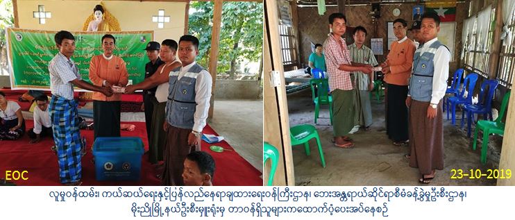 လူမှု၀န်ထမ်း၊ ကယ်ဆယ်ရေးနှင့်ပြန်လည်နေရာချထားရေး၀န်ကြီးဌာန၊ ဘေးအန္တရာယ်ဆိုင်ရာ စီမံခန့်ခွဲမှုဦးစီးဌာန၊ မိုးညိုမြို့နယ်ဦးစီးမှူးရုံးမှ တာဝန်ရှိသူများသည် (၁၄-၁၀-၂၀၁၉) ရက်နေ့တွင် လေပြင်းတိုက်ခတ်မှုကြောင့် မိုးညိုမြို့နယ်၊ အင်းတ္တော်လုပ်ကျေးရွာအုပ်စု၊ ထိန်ကုန်းကျေးရွာတွင် ပြိုလဲနေအိမ်(၁)လုံးနှင့် အမိုးလန်နေအိမ်(၃)လုံးနှင့် ဇီးပင်ကျေးရွာအုပ်စု၊ ဇီးပင်ကျေးရွာတွင် အမိုးလန်နေအိမ် (၁) လုံး ပြိုလဲပျက်စီးခဲ့ရာပြိုလဲနေအိမ် (၁) လုံးအတွက် အိမ်ဆောက်ပစ္စည်းဖိုး ထောက်ပံ့ငွေ (၁၀၀,၀၀၀/-) ကျပ်၊ ကယ်ဆယ်ရေးပစ္စည်း (၁၆) မျိုးပါ ပလပ်စတစ်ပုံး (၁) ပုံးနှင့်ဘေးသင့်လူဦးရေ (၂၃) ဦးအတွက်ဆန်ရိက္ခာဖိုးထောက်ပံ့ငွေ (၄၈,၃၀ဝ/-) ကျပ်၊ စုစုပေါင်း ထောက်ပံငွေ (၁၄၈,၃၀ဝ/-) ကျပ်တိတိအား (၂၃-၁၀-၂၀၁၉) ရက်နေ့၊ (၁၃:၀၀) နာရီအချိန်တွင် ထိန်ကုန်းကျေးရွာ၌ အမျိုးသားလွှတ်တော်ကိုယ်စားလှယ်၊ သက်ဆိုင်ရာကျေးရွာအုပ်ချုပ်ရေးမှူး၊ တာဝန်ရှိသူများနှင့်အတူ ဘေးသင့်ပြည်သူများ၏ လက်၀ယ်အရောက်ထောက်ပံ့ပေးအပ်ခဲ့ပါ ကြောင်း သတင်းရရှိပါသည်။