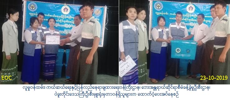 လူမှု၀န်ထမ်း၊ ကယ်ဆယ်ရေးနှင့်ပြန်လည်နေရာချထားရေး၀န်ကြီးဌာန၊ ဘေးအန္တရာယ်ဆိုင်ရာ စီမံခန့်ခွဲမှုဦးစီးဌာန၊ ပဲခူးတိုင်းဒေသကြီးဦးစီးမှူးရုံးမှတာဝန်ရှိသူများသည် (၅-၁၀-၂၀၁၉) ရက်နေ့ ၌ပဲခူးတိုင်းဒေသကြီး၊ သာယာဝတီခရိုင်၊ နတ်တလင်းမြို့နယ်၊ ဆီဆုံကုန်းကျးရွာအုပ်စု၊ မကျီးစု ကျေးရွာအုပ်စု၊ တာပွန်မြို့မြောက်ပိုင်းရပ်ကွက်နှင့် ဇီးပင်ကွေ့ကျေးရွာတို့တွင်ဖြစ်ပွားခဲ့သောလေဘေး မှလေဘေးသင့်ပြိုလဲနေအိမ် (၄) လုံးအတွက် အိမ်ဆောက်ပစ္စည်းဖိုးထောက်ပံ့ငွေ(၄၀၀၀၀၀/-) ကျပ်၊ ပြိုလဲနေအိမ် (၄) လုံးနှင့် အမိုးလန်နေအိမ် (၁၀) လုံးတို့ရှိလူဦးရေ (၆၂) ဦးတို့အတွက် ဆန်ရိက္ခာ (၇) စာဖိုးထောက်ပံ့ငွေ (၁၃၀၂၀၀/-) ကျပ်၊ စုစုပေါင်းထောက်ပံ့ငွေ (၅၃၀၂၀၀/-) ကျပ် နှင့်ပြိုလဲနေအိမ် (၄) လုံးအတွက် ကယ်ဆယ်ရေးပစ္စည်း (၁၆) မျိုးပါ (၄) အိမ်ထောင်စာတို့အား (၂၃-၁၀-၂၀၁၉) ရက်နေ့ (၁၄:၃၀) အချိန်တွင် ပဲခူးတိုင်းဒေသကြီး သာယာဝတီခရိုင်၊ နတ်တလင်းမြို့နယ်၊ အထွေထွေအုပ်ချုပ်ရေးဦးစီးဌာနရုံး၌ နတ်တလင်းမြို့နယ်အထွေထွေအုပ်ချုပ်ရေးဦးစီး ဌာနမှတာဝန်ရှိသူများ၊ သက်ဆိုင်ရာရပ်ကွက်/ ကျေးရွာအုပ်ချုပ်ရေးမှူးများနှင့်အတူ ဘေးသင့် ပြည်သူများလက်ဝယ်အရောက် သွားရောက်ထောက်ပံ့ပေးအပ်ခဲ့ကြောင်း သတင်းရရှိပါသည်။