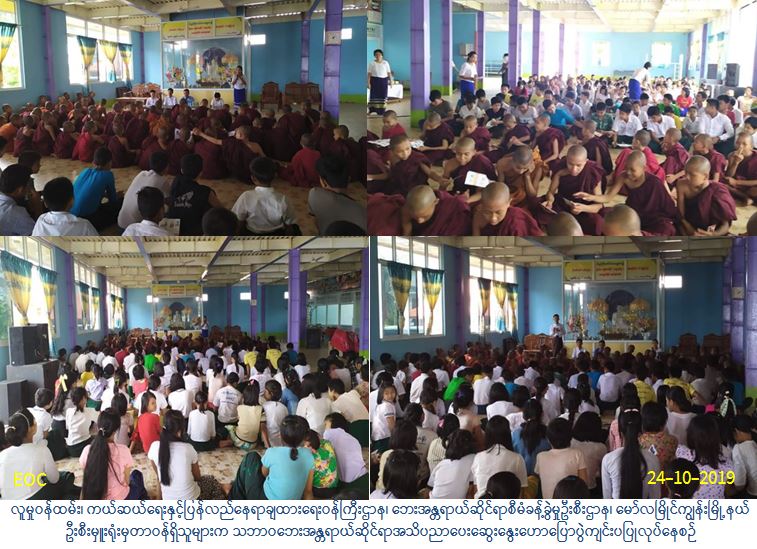 လူမှု၀န်ထမ်း၊ ကယ်ဆယ်ရေးနှင့်ပြန်လည်နေရာချထားရေး၀န်ကြီးဌာန၊ ဘေးအန္တရာယ်ဆိုင်ရာ စီမံခန့်ခွဲမှုဦးစီးဌာန၊ မော်လမြိုင်ကျွန်းမြို့နယ်ဦးစီးမှူးရုံးမှ တာဝန်ရှိသူများသည် (၂၄-၁၀-၂၀၁၉) ရက်နေ့(၁၃:၃၀) နာရီအချိန်တွင် မြို့နယ်ပြန်ကြားရေးနှင့်ပြည့်သူ့ဆက်ဆံရေးဦးစီးဌာန၊ မြို့နယ် မွေးမြူရေးနှင့်ကုသရေးဦးစီးဌာန၊ မြို့နယ်စားသုံးသူရေးရာဦးစီးဌာန၊ မြို့နယ်တိုင်းရင်းဆေးတို့ နှင့်ပူးပေါင်း၍ မော်လမြိုင်ကျွန်းမြို့နယ်၊ ပစ္ဆိမာရုံဘုန်းတော်ကြီးပညာသင်ကျောင်း၌ ကျောင်းသား/ ကျောင်းသူ (၂၅၀) ဦးခန့်အား သဘာဝဘေးအန္တရာယ်ဆိုင်ရာအသိပညာပေးဆွေးနွေးဟောပြော ခြင်းနှင့် လက်ကမ်းစာစောင်များဝေငှခြင်းတို့ကို ကျင်းပပြုလုပ်ခဲ့ပါကြောင်း သတင်းရရှိပါသည်။
