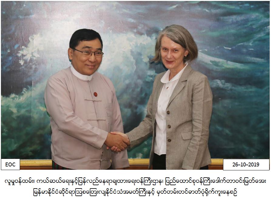 ယမန်နေ့ နံနက်ပိုင်းတွင် အဆိုပါဝန်ကြီးရုံး မေခလာခန်းမ၌ လာရောက်တွေ့ဆုံခဲ့ပါသည်။