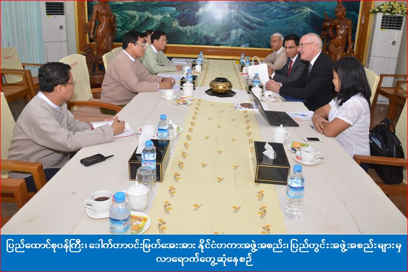 လူမှုဝန်ထမ်း၊ ကယ်ဆယ်ရေးနှင့် ပြန်လည်နေရာချထားရေးဝန်ကြီးဌာန၊ မေခလာခန်းမတွင် မေလ (၁၇) ရက်နေ့၊ နံနက် ( ၁၀:၃၀ ) နာရီအချိန်က ပြည်ထောင်စုဝန်ကြီး ဒေါက်တာဝင်းမြတ်အေး အား UNICEF အဖွဲ့အစည်းမှ Senior Social Protection Consultant ဖြစ်သူ Mr. Philip Goldman ဦးဆောင်သောအဖွဲ့မှ လာရောက်တွေ့ဆုံခဲ့ပါသည်။ ထို့သို့တွေ့ဆုံရာ၌ လူမှုကာကွယ်စောင့်ရှောက်ရေး မဟာဗျူဟာစီမံချက်ပါ လုပ်ငန်း အစီအစဉ်များ၊ လွှတ်တော်အသီးသီးရှိ လွှတ်တော်ကိုယ်စားလှယ်များအား လူမှုကာကွယ်စောင့်ရှောက်ရေး အသိပညာပေးလုပ်ငန်းစဉ်များ၊ မိခင်နှင့် ကလေး လူမှုထောက်ပံ့ရေး အစီအစဉ်များနှင့် လူမှုရေးရာဖြစ်ရပ်စီမံခန့်ခွဲမှု လုပ်ငန်းစဉ်များနှင့်စပ်လျဉ်း၍ ရင်းနှီးပွင့်လင်းစွာ ဆွေးနွေးခဲ့ကြပါသည်။