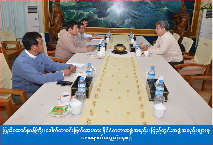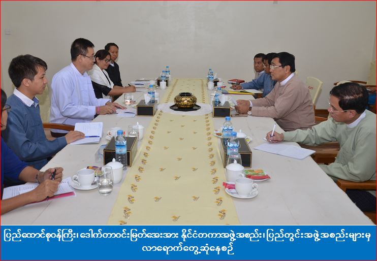 အလားတူ ( ၁၂:၀၀ ) နာရီအချိန်တွင် ပြည်ထောင်စုဝန်ကြီးအား မေတ္တာဖွံ့ဖြိုးရေးဖောင်ဒေးရှင်း အပါအဝင် ဒေသခံလူမှုရေးအဖွဲ့ (၉) ဖွဲ့ ပေါင်းစုဖွဲ့စည်းထားသည့် ပူးပေါင်းလုပ်ငန်းစဉ်အဖွဲ့၊ အတွင်းရေးမှူး ဦးဂွမ်ရှာအောင်း ဦးဆောင်သောအဖွဲ့မှ လာရောက်တွေ့ဆုံခဲ့ပါသည်။ ထိုသို့ တွေ့ဆုံရာ၌ ကချင်ပြည်နယ်နှင့် ရှမ်းပြည်နယ်ရှိ နေရပ်စွန့်ခွာရွှေ့ပြောင်း နေထိုင်သူများအတွက် လူသားချင်းစာနာထောက်ထားမှုအကူအညီ ပံ့ပိုးရေးကိစ္စရပ်များ၊ ပြည်သူများ ဘေးကင်းလုံခြုံစွာဖြင့် နေရပ်ပြန်လည်ပို့ဆောင်ရေးနှင့် ပြန်လည်ထူထောင်ရေးအတွက် ပြည်တွင်း၊ ပြည်ပအဖွဲ့အစည်းများနှင့် ပူးပေါင်းဆောင်ရွက်ရမည့် လုပ်ငန်းစဉ်များနှင့် စပ်လျဉ်း၍ ရင်းနှီးပွင့်လင်းစွာ ဆွေးနွေးခဲ့ကြပါသည်။