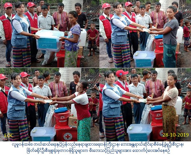 လူမှု၀န်ထမ်း၊ ကယ်ဆယ်ရေးနှင့်ပြန်လည်နေရာချထားရေး၀န်ကြီးဌာန၊ ဘေးအန္တရာယ်ဆိုင်ရာ စီမံခန့်ခွဲမှုဦးစီးဌာန၊ မြိတ်ခရိုင်ဦးစီမှူးရုံး (ဘစမ) မှတာဝန်ရှိသူများသည် (၂၆-၁၀-၂၀၁၉) ရက်နေ့တွင် ကျွန်းစုမြို့နယ်၊ မအိုင်ကျေးရွာအုပ်စု၊ မစမ်းပါးကျေးရွာမီးဘေးမှ မီးဘေးသင့်အိမ်ခြေ (၃) လုံးအတွက်ကယ်ဆယ်ရေးပစ္စည်း (၁၆) မျိုး၊ အိမ်ထောင်စု (၃) စုစာ အိမ်ဆောက်ပစ္စည်းဖိုး ထောက်ပံ့ငွေ (၃၀၀၀၀၀/-) ကျပ်၊ မီးတားဖျက်သိမ်းအိမ်ခြေ (၇) လုံးအတွက် အိမ်ဆောက် ပစ္စည်းဖိုးထောက်ပံ့ငွေ (၇၀၀၀၀၀) ကျပ်၊ ဘေးသင့်လူဦးရေ (၅၉) ဦးအတွက်ဆန်ရိက္ခာဖိုးထောက် ပံ့ငွေ (၁၂၃၉၀၀/-) ကျပ်၊ စုစုပေါင်းထောက်ပံ့ငွေ (၁၁၂၃၉၀၀/-) ကျပ်အား (၂၈-၁၀-၂၀၁၉) ရက်နေ့ နေ့လည် (၁၂:၃၀) အချိန်၌ ကြက်ခြေနီတပ်ဖွဲ့နှင့်ပူးပေါင်း၍ သွားရောက်ထောက်ပံ့ခဲ့ပါကြောင်း သတင်းရရှိပါသည်။