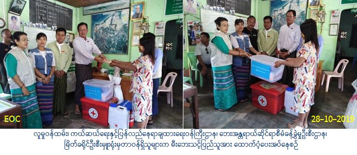 လူမှု၀န်ထမ်း၊ ကယ်ဆယ်ရေးနှင့်ပြန်လည်နေရာချထားရေး၀န်ကြီးဌာန၊ ဘေးအန္တရာယ်ဆိုင်ရာ စီမံခန့်ခွဲမှုဦးစီးဌာန၊ မြိတ်ခရိုင်ဦးစီးမှူးရုံးမှတာဝန်ရှိသူများသည် (၂၇-၁၀-၂၀၁၉) ရက်နေ့ မြိတ်မြို့နယ်၊ ကလွင်ကျေးရွာအုပ်စု၊ ငွေပုလဲရပ်ကွက်မီးဘေးမှ မီးဘေးသင့်အိမ်ခြေ (၁) လုံးအတွက် ကယ်ဆယ်ရေးပစ္စည်း (၁၆) မျိုး အိမ်ထောင် (၁) စုစာ၊ အိမ်ဆောက်ပစ္စည်းဖိုးထောက်ပံ့ငွေ (၁၀၀၀၀၀/-) ကျပ်၊ လူ(၁) ဦးအတွက်ဆန်ရိက္ခာဖိုး ထောက်ပံ့ငွေ(၂၁၀၀/-) ကျပ်၊ စုစုပေါင်း ထောက်ပံ့ငွေ (၁၀၂၁၀၀/-) ကျပ်အား (၂၈-၁၀-၂၀၁၉) ရက်နေ့ နံနက် (၉:၁၅) အချိန်တွင် ကြက်ခြေနီတပ်ဖွဲ့နှင့်ပူးပေါင်း၍ သွားရောက်ထောက်ပံ့ခဲ့ပါကြောင်း သတင်းရရှိသည်။