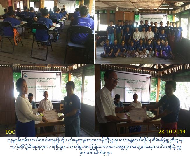 လူမှု၀န်ထမ်း၊ ကယ်ဆယ်ရေးနှင့်ပြန်လည်နေရာချထားရေး၀န်ကြီးဌာန၊ ဘေးအန္တရာယ်ဆိုင်ရာ စီမံခန့်ခွဲမှုဦးစီးဌာန၊ ဖျာပုံခရိုင်ဦးစီးမှူးရုံးမှတာဝန်ရှိသူများသည် အောက်တိုဘာလ (၂၇) ရက်နှင့်(၂၈) ရက်နေ့များတွင် ဘိုကလေးမြို့နယ်၊ ထော်ပိုင်ကျေးရွာအုပ်စုရှိ ကျေးရွာမှလူငယ်(၂၅) ဦးတို့အား ထော်ပိုင်ကျေးရွာသစ်တောခန်းမ၌ သစ်တောသယံဇာတပတ်ဝန်းကျင်ဖွံ့တိုးတက် ရေးနှင့်ထိန်းသိမ်းရေးအသင်း (FREDA) မှဖွှင့်လှစ်ခဲ့သည့် ရပ်ရွာအခြေပြုသဘာဝဘေးအန္တရာယ် လျော့ပါးရေးသင်တန်းတွင် သဘာဝဘေးစီမံခန့်ခွဲမှုအခြေခံဘာသာရပ်အား သင်ကြားပို့ချခဲ့ပါ ကြောင်း သတင်းရရှိပါသည်။