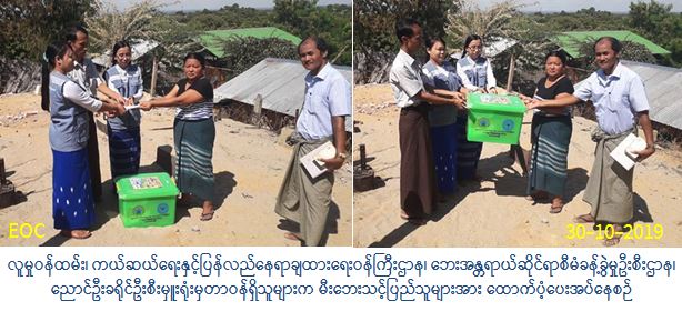 လူမှု၀န်ထမ်း၊ ကယ်ဆယ်ရေးနှင့်ပြန်လည်နေရာချထားရေး၀န်ကြီးဌာန၊ ဘေးအန္တရာယ်ဆိုင်ရာ စီမံခန့်ခွဲမှုဦးစီးဌာန၊ ညောင်ဦးခရိုင်ဦးစီးမှူးရုံးမှ တာဝန်ရှိသူများသည် ညောင်ဦးမြို့နယ်၊ အမှတ် (၁) ရပ်ကွက်၌ (၂၈-၁၀-၂၀၁၉) ရက်နေ့၊ (၁၄:၃၀) အချိန်တွင်ဖြစ်ပွားခဲ့သော မီးဘေးကြောင့် လုံးဝပျက်စီးနေအိမ် (၁) လုံး၊ အိမ်ထောင်စု (၁) စုမှ လူဦးရေ (၄) ဦးဘေးသင့်ခဲ့ရာ အဆိုပါ ဘေးသင့်ပြည်သူများအတွက် အိမ်ဆောက်ပစ္စည်းဖိုးထောက်ပံ့ငွေ (၁၀၀,၀၀ဝ/-) ကျပ်၊ ဆန်ရိက္ခာဖိုး ထောက်ပံ့ငွေ (၈,၄၀ဝ/-) ကျပ်နှင့် ကယ်ဆယ်ရေးပစ္စည်း (၁၈) မျိုး (၁) အိမ်ထောင်စာတို့ကို (၃၀-၁၀-၂၀၁၉) ရက်နေ့တွင် ညောင်ဦးမြို့နယ်အထွေထွေအုပ်ချုပ်ရေးဦးစီးဌာနမှ တာဝန်ရှိသူများ နှင့်အတူ ဘေးသင့်ပြည်သူများ၏လက်ဝယ်အရောက် သွားရောက်ထောက်ပံ့ပေးအပ်ခဲ့ပါကြောင်း သတင်းရရှိပါသည်။