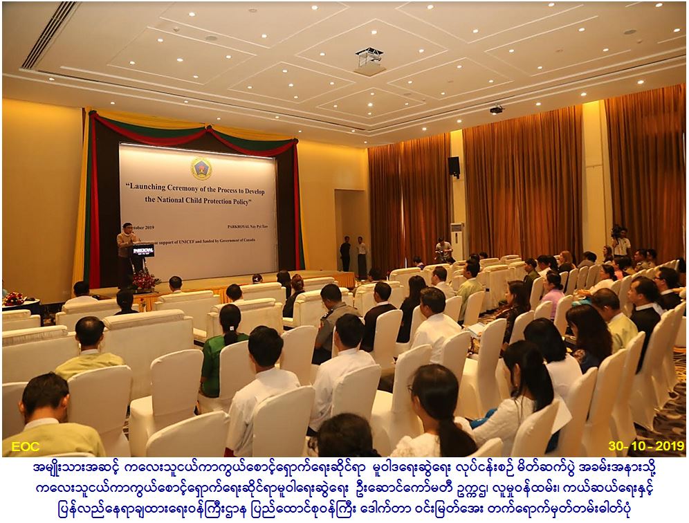 အမျိုးသားအဆင့် ကလေးသူငယ်ကာကွယ်စောင့်ရှောက်ရေးဆိုင်ရာ မူဝါဒရေးဆွဲရေး လုပ်ငန်းစဉ်မိတ်ဆက်ပွဲ အခမ်းအနားကို ယနေ့ မွန်းလွဲပိုင်းက နေပြည်တော် Park Royal ဟိုတယ်၌ ကျင်းပရာ ကလေးသူငယ်ကာကွယ်စောင့်ရှောက်ရေးဆိုင်ရာမူဝါရေးဆွဲရေး ဦးဆောင် ကော်မတီ ဥက္ကဌ၊ လူမှုဝန်ထမ်း၊ ကယ်ဆယ်ရေးနှင့် ပြန်လည်နေရာချထားရေးဝန်ကြီးဌာန ပြည်ထောင်စုဝန်ကြီး ဒေါက်တာ ဝင်းမြတ်အေး တက်ရောက်ခဲ့ပါသည်။