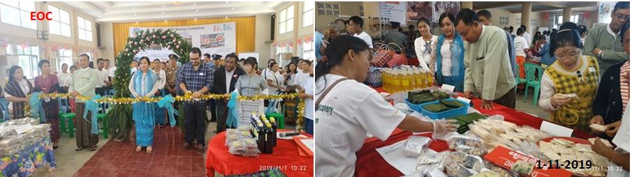 လူမူဝန်ထမ်း၊ ကယ်ဆယ်ရေးနှင့် ပြန်လည်နေရာချထားရေး ဝန်ကြီးဌာန၊ ဘေးအန္တရာယ်ဆိုင်ရာစီမံခန့်ခွဲမှု ဦးစီးဌာန၊ ကချင်ပြည်နယ်ဦးစီးမှူးရုံးနှင့် ဒိန်းမတ်လူမူရေးအဖွဲ့အစည်း (DRC/DDG) တို့ပူးပေါင်း၍ ကချင် ပြည်နယ်အတွင်း ရေရှည်တည်တံ့သော အသက်မွေးဝမ်းကျောင်းနှင့် ဈေးကွက်စီးပွားရေးစနစ်တွင် ပါဝင်နိုင် စေရန်အတွက် ကိုယ်ထူကိုယ်ထ စီးပွားရေးလုပ်ငန်းများအားပံ့ပိုး ခြင်းအစီအစဉ်အား ကချင်ပြည်နယ်၊ ဗန်းမော်ခရိုင်၊ မြို့တော်ခန်းမ၌ (၁-၁၁-၂၀၁၉) ရက်နေ့တွင်၊ ဗန်းမော်ခရိုင် ဒု-ခရိုင်အုပ်ချုပ်ရေးမှူးမှ အဖွင့်အမှာ စကားပြောကြားခြင်း၊ ကချင်ပြည်နယ်ဘေးအန္တရာယ်ဆိုင် ရီာမံခန့်ခွဲမှုးစီးဌာန၊ ပြည်နယ်ဦးစီးမှူး ဒေါ်လှကေသီ မာမှ အမှာစကားပြောကြားခြင်း၊ ဒိန်းမတ်လူမူရေးအဖွဲ့အစည်း (DRC/DDG) ၏ တာဝန်ခံကိုကိုယ်စားလှယ်မှ ကြိုဆိုနှုတ်ခွန်းဆက်စကားနှင့် ရည်ရွယ်ချက်အား ရှင်းလင်းပြောကြားခြင်းနှင့် ဒိန်းမတ်လူမူရေးအဖွဲ့အစည်း (DRC/ DDG) ၏ ပံ့ပိုးငွေ ဖြင့် လက်မှုလုပ်ငန်း လုပ်ကိုင်သူ အမျိုးသားတစ်ဦး/အမျိုးသမီးတစ်ဦးမှ လုပ်ငန်း အကြောင်း ရှင်းလင်းတင်ပြတို့ကို ပြုလုပ်ခဲ့ကြောင်း သိရှိရပါသည်။
