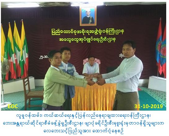 လူမှုဝန်ထမ်း၊ ကယ်ဆယ်ရေးနှင့်ပြန်လည်နေရာချထားရေးဝန်ကြီးဌာန၊ ဘေးအန္တရာယ် ဆိုင်ရာစီမံခန့်ခွဲမှု ဦးစီးဌာန၊ ဖျာပုံခရိုင်ဦးစီးမှူးရုံးမှ တာဝန်ရှိသူများသည် အောက်တိုဘာ (၃၀) ရက်နေ့တွင် မြသိန်းတန်ကျေးရွာအုပ်စု၊ ကံကုန်းကျေးရွာနှင့် အေးရွာကျေးရွာ တို့တွင် လေဘေးဖြစ်ပွားခဲ့ခြင်းကြောင့် ဘေးသင့်ပြိုလဲအိမ်ခြေ (၂) အိမ်၊ အမိုးလန်(၁) အိမ်အတွက် အိမ်ဆောက်ပစ္စည်းဖိုးထောက်ပံ့ငွေ (၂၃၀၀၀၀/-) ကျပ်၊ လူဦးရေ (၁၉) ဦးအတွက် ဆန်ရိက္ခာဖိုးထောက်ပံ့ငွေ (၃၉၉၀၀/-) ကျပ်၊ ကယ်ဆယ်ရေးပစ္စည်း (၁၇) မျိုး (၂) အိမ်ထောင်စုစာတို့ကို အောက်တိုဘာလ (၃၁) ရက်နေ့တွင်သွားရောက်ထောက်ပံခဲ့ပါ ကြောင်း သတင်းရရှိပါသည်။